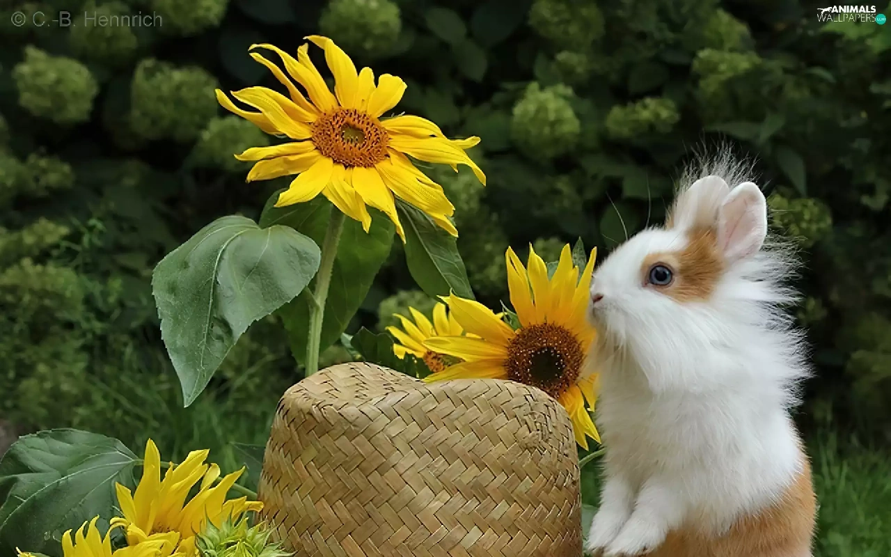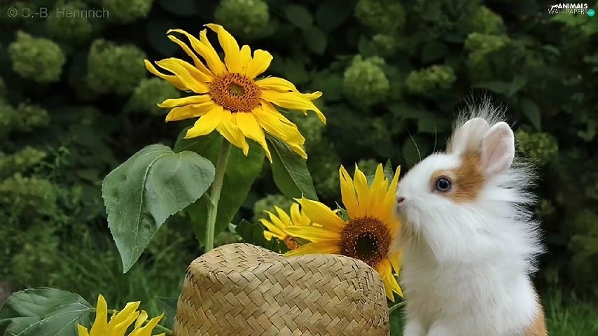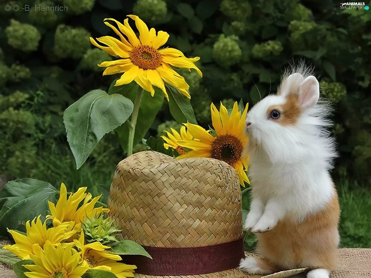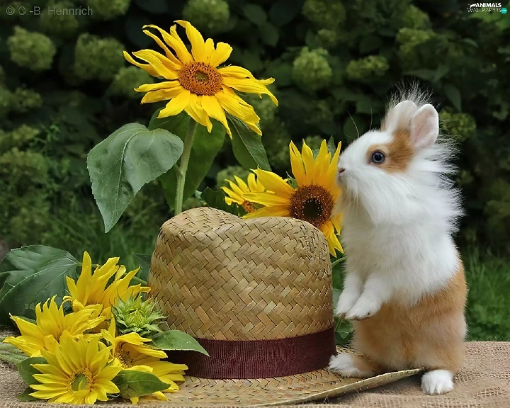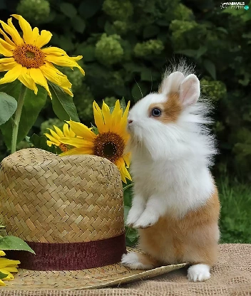 Nice sunflowers, Bunny, Hat