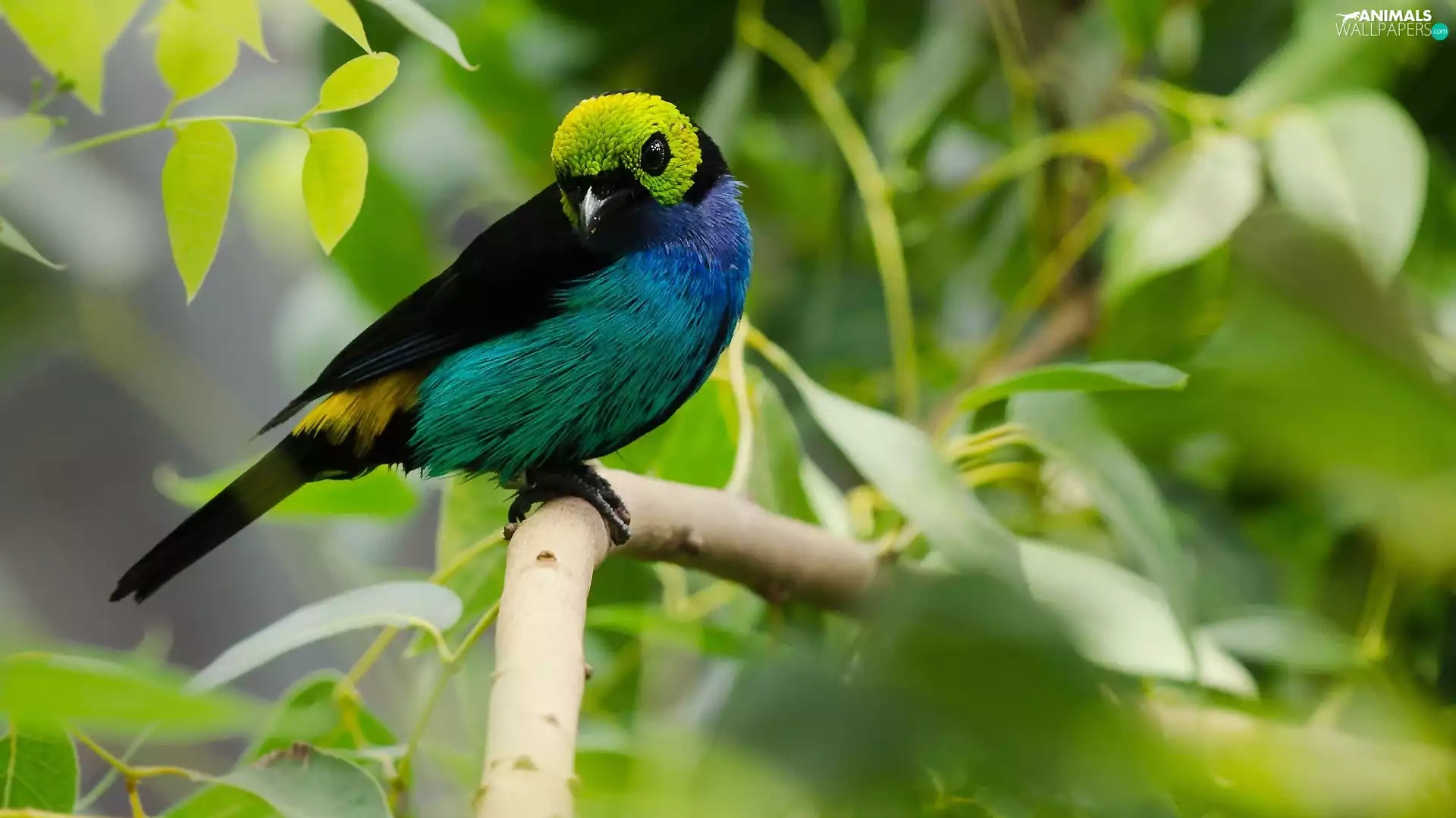 Green, head, heavenly, Tanager, Bird