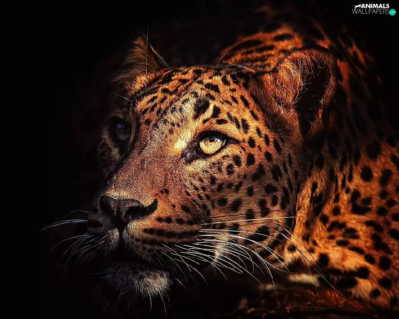Leopards, Black, background, Head