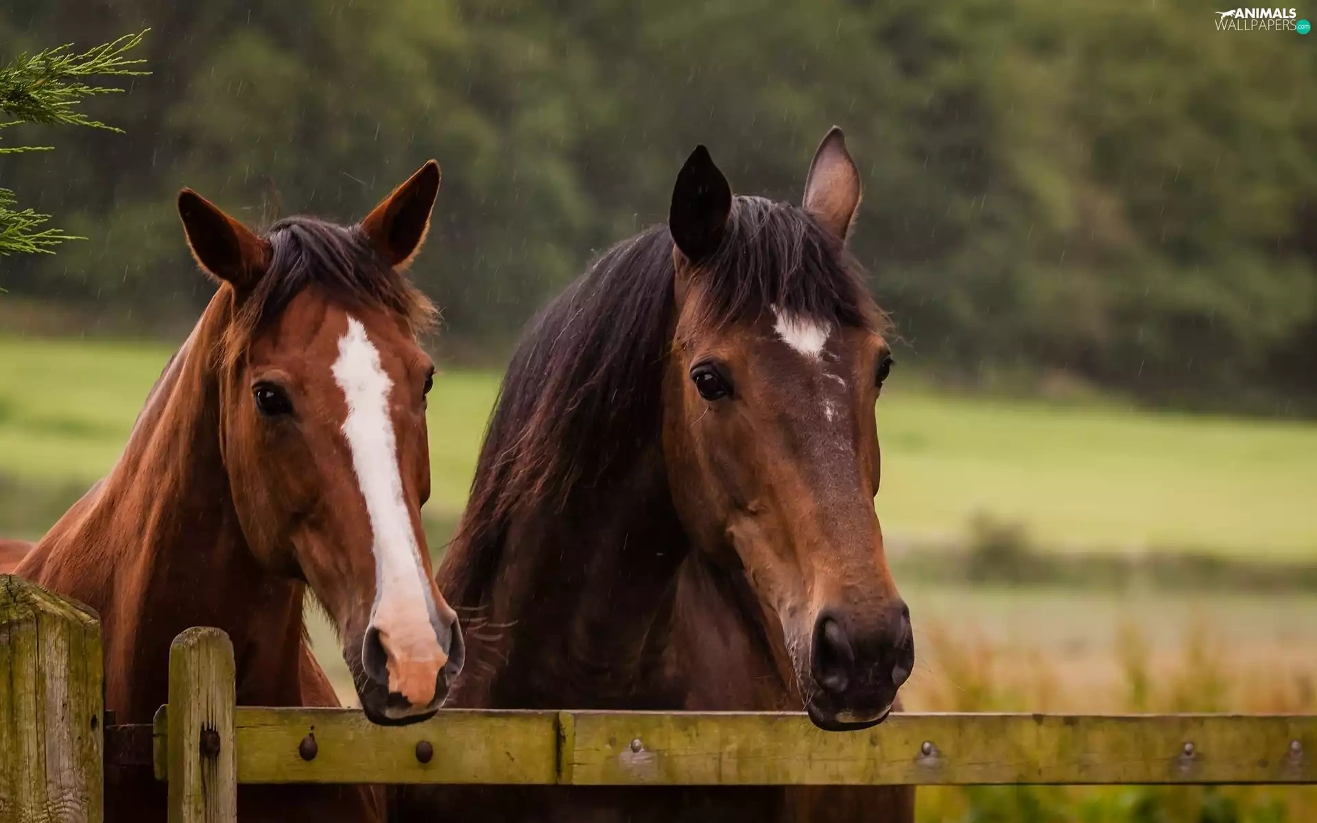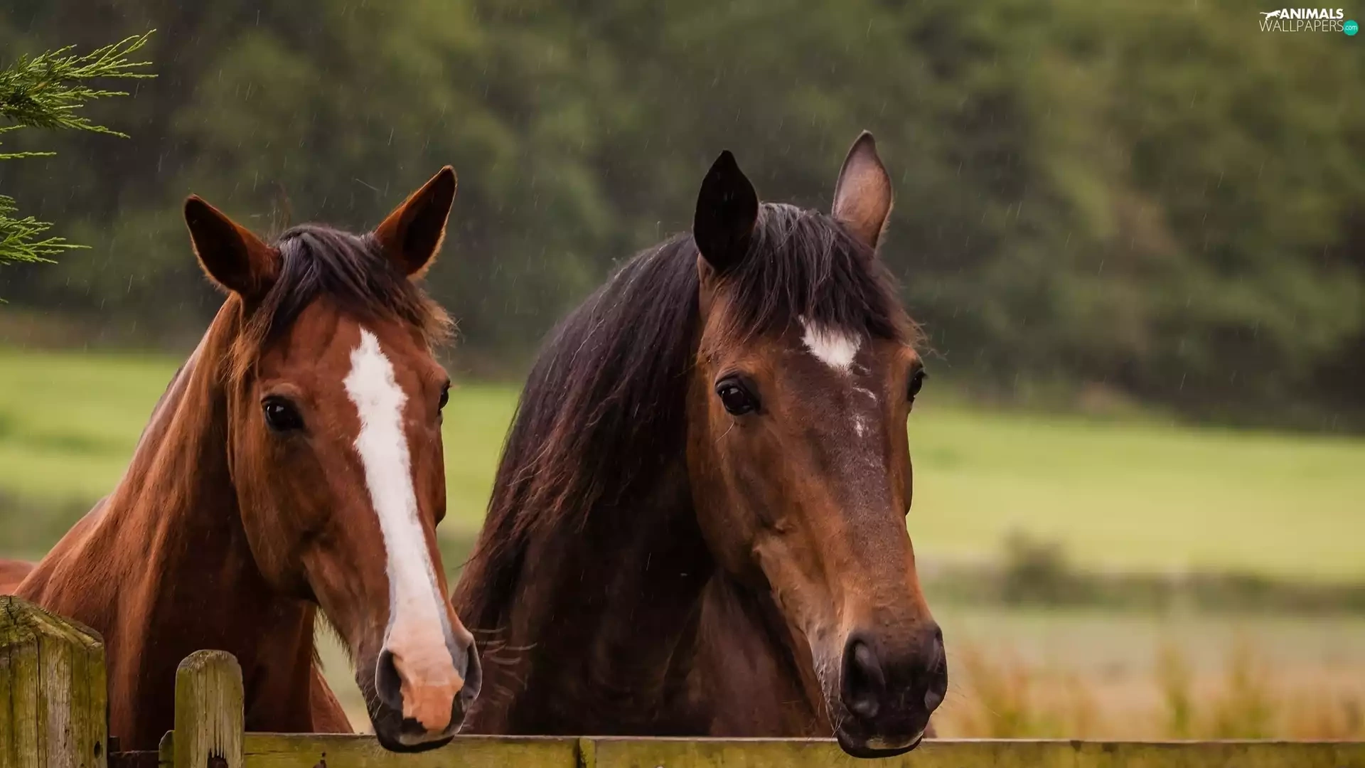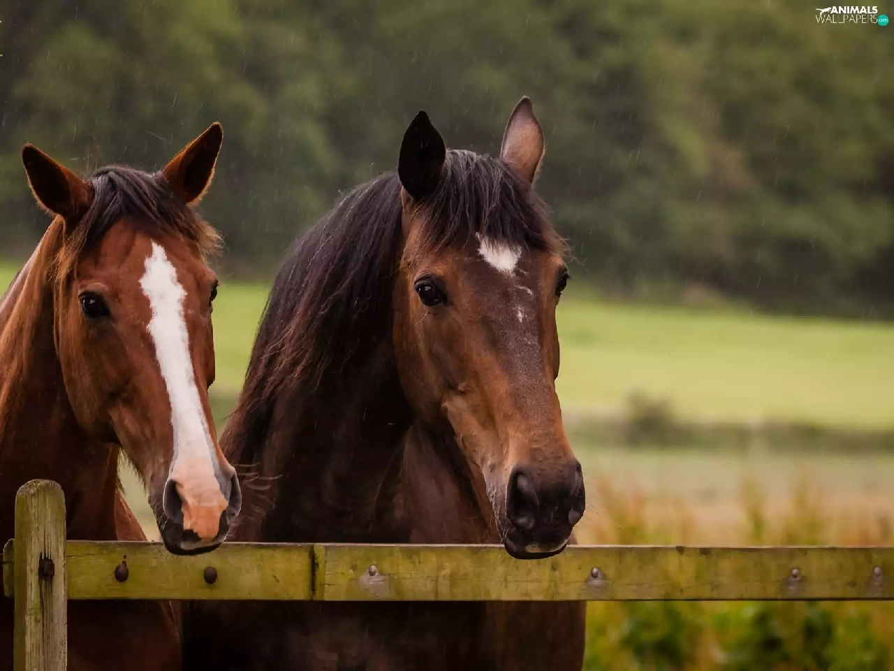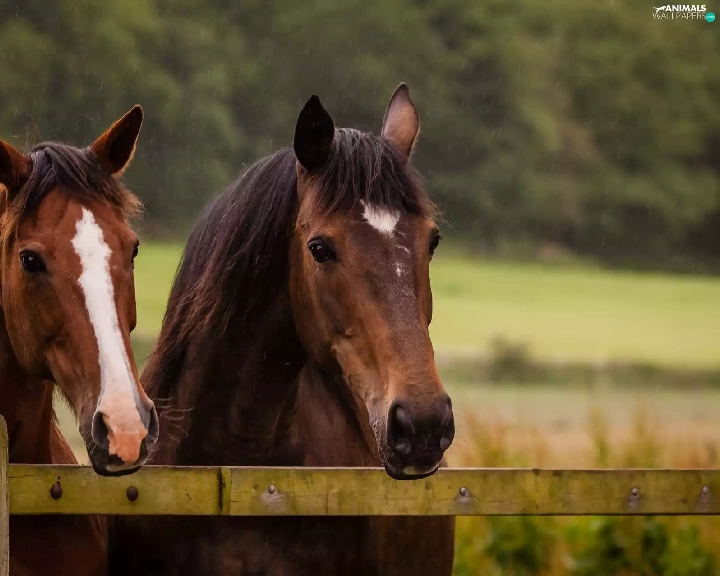 bloodstock, fence, Rain, Heads