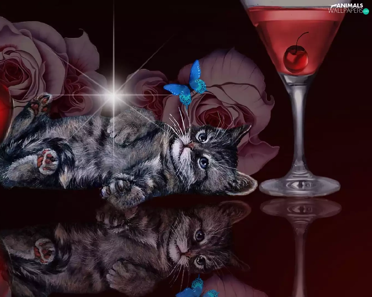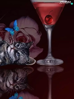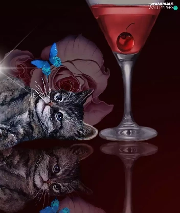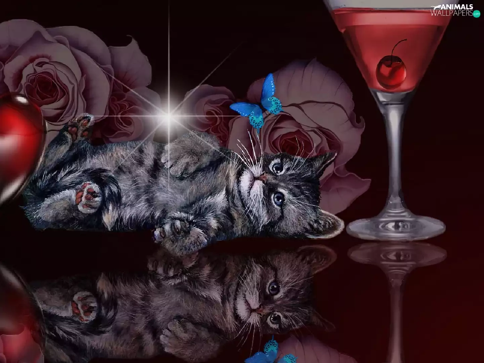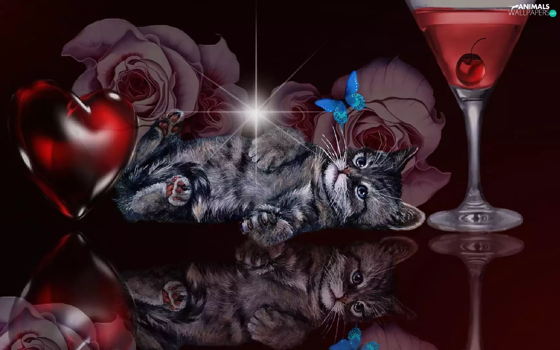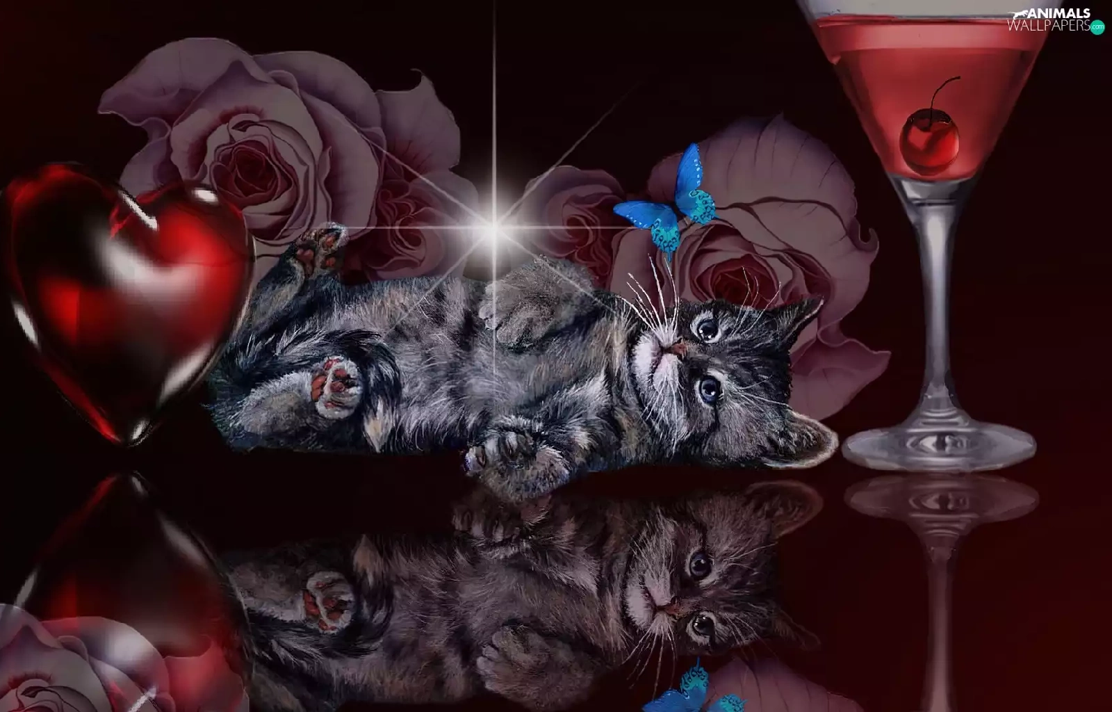kitten, reflection, Art, Heart