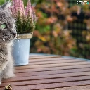 cat, dun, Eyes, heather, green ones, Longhaired