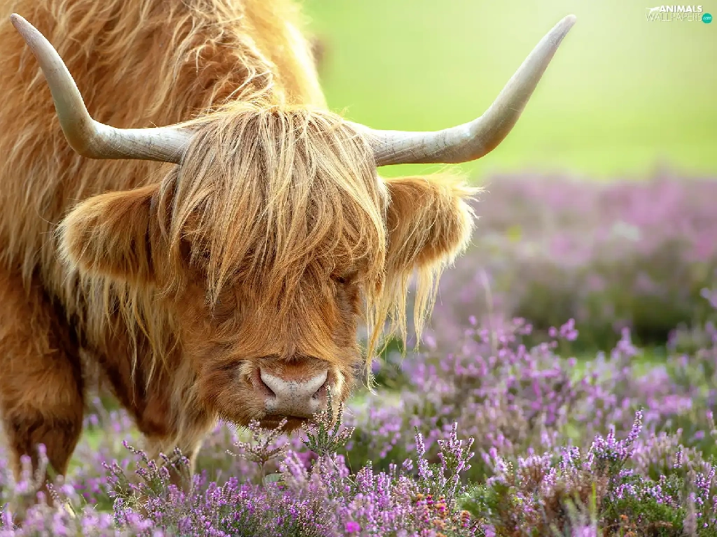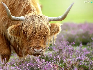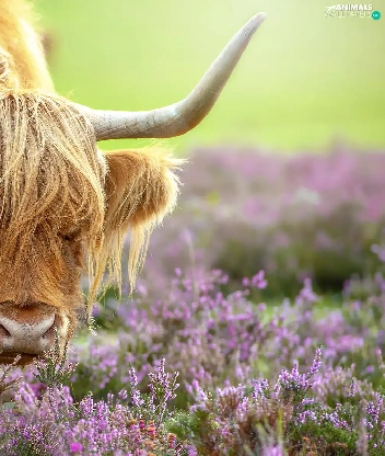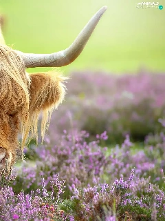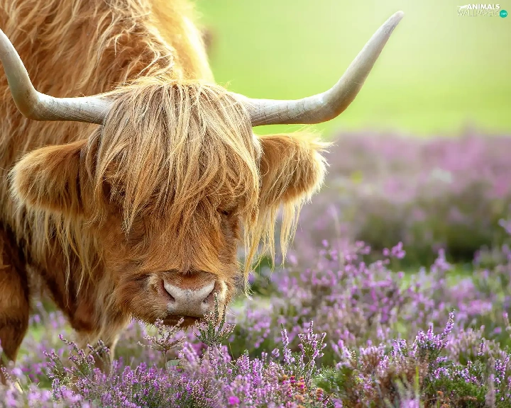 Highland, Cow, horns, heather, bent, Scottish Breed