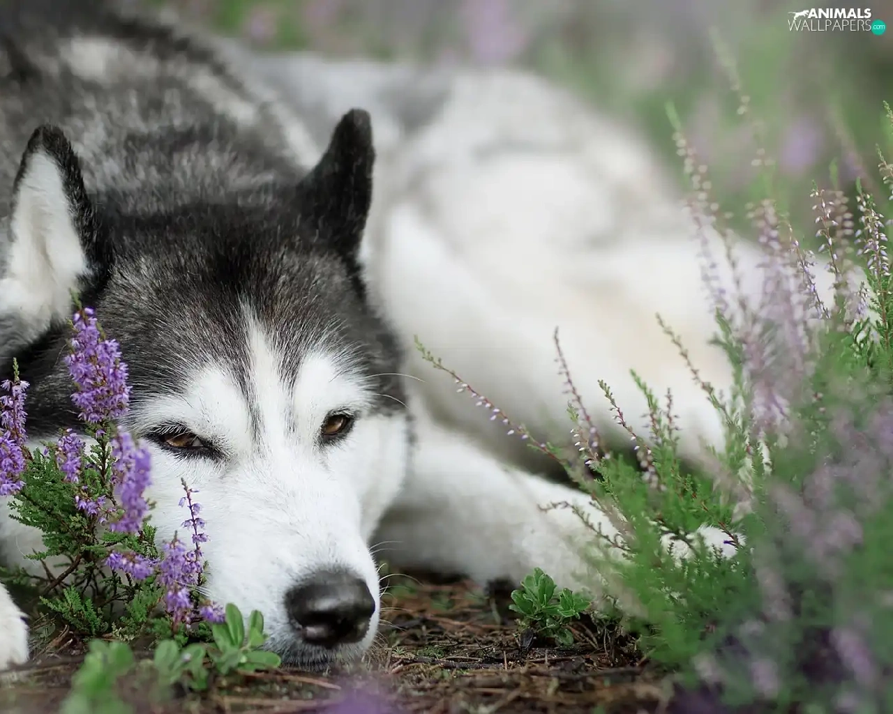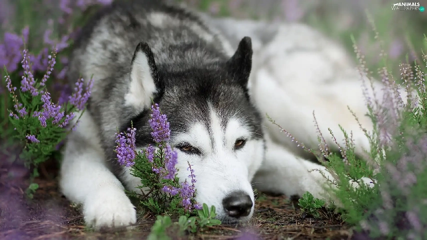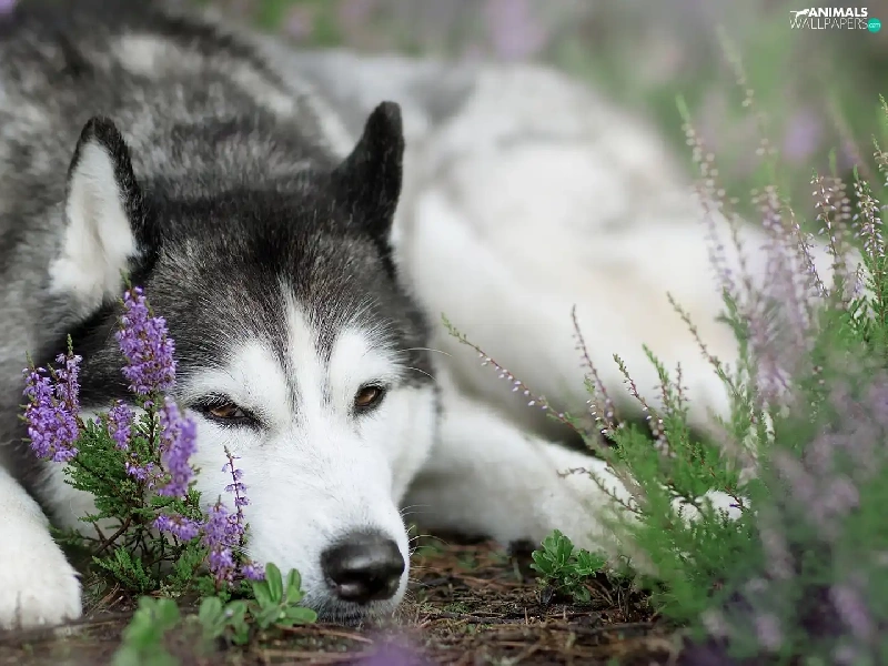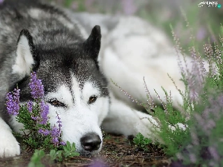 dog, muzzle, heather, Siberian Husky