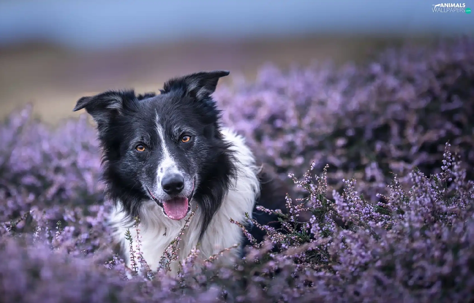 dog, Border Collie, heathers, black and white