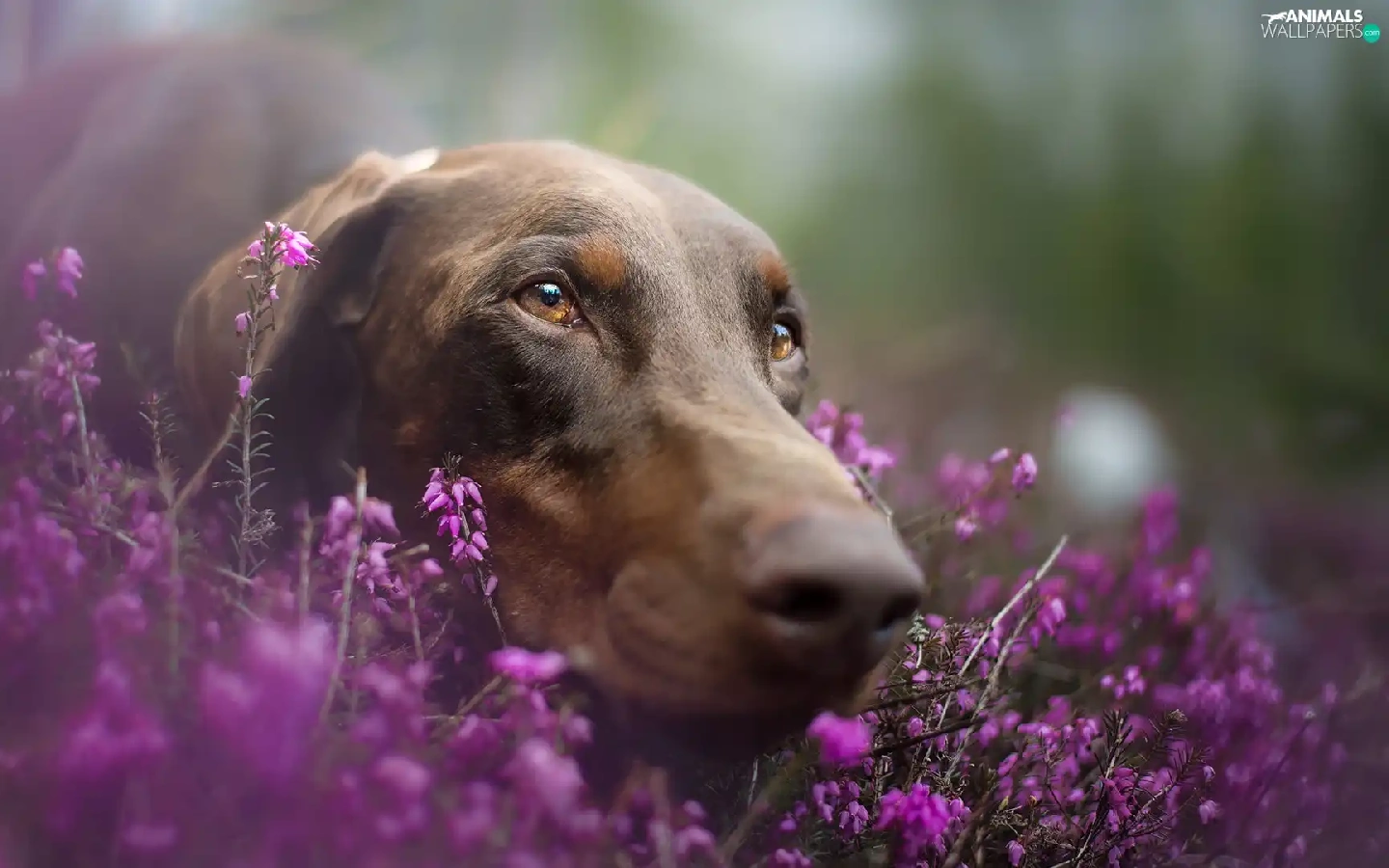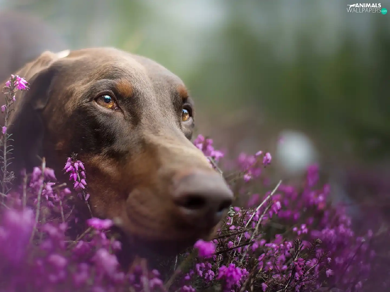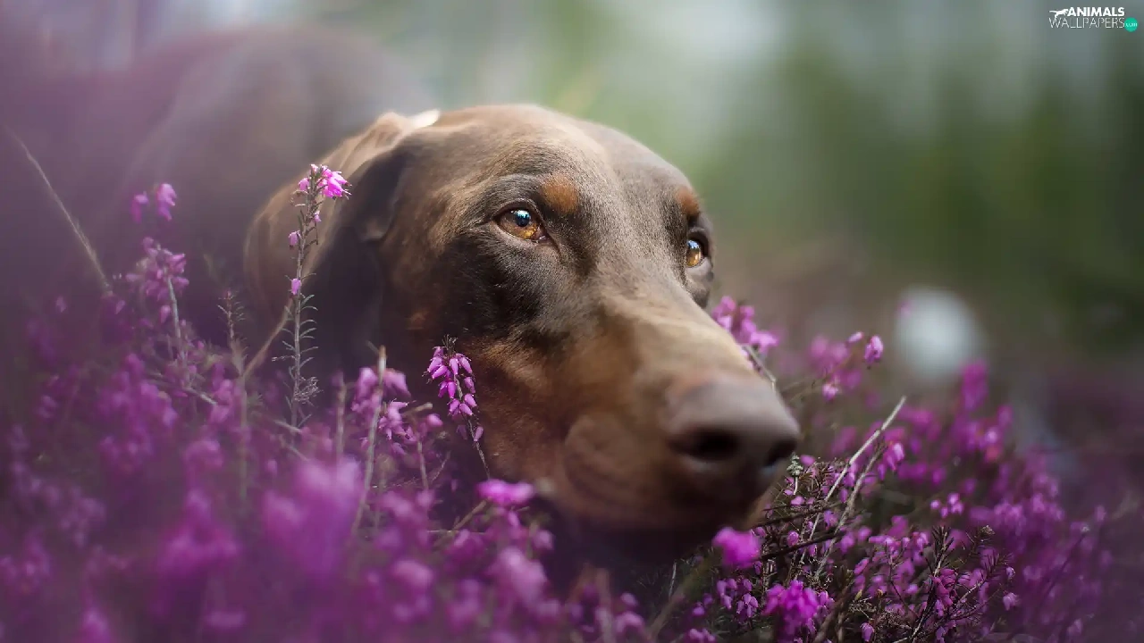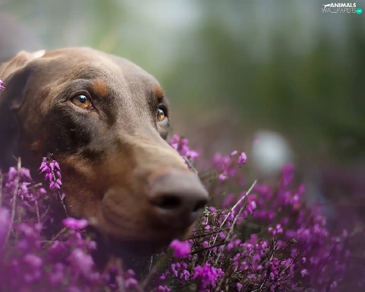 Doberman, heathers, muzzle, Brown, dog