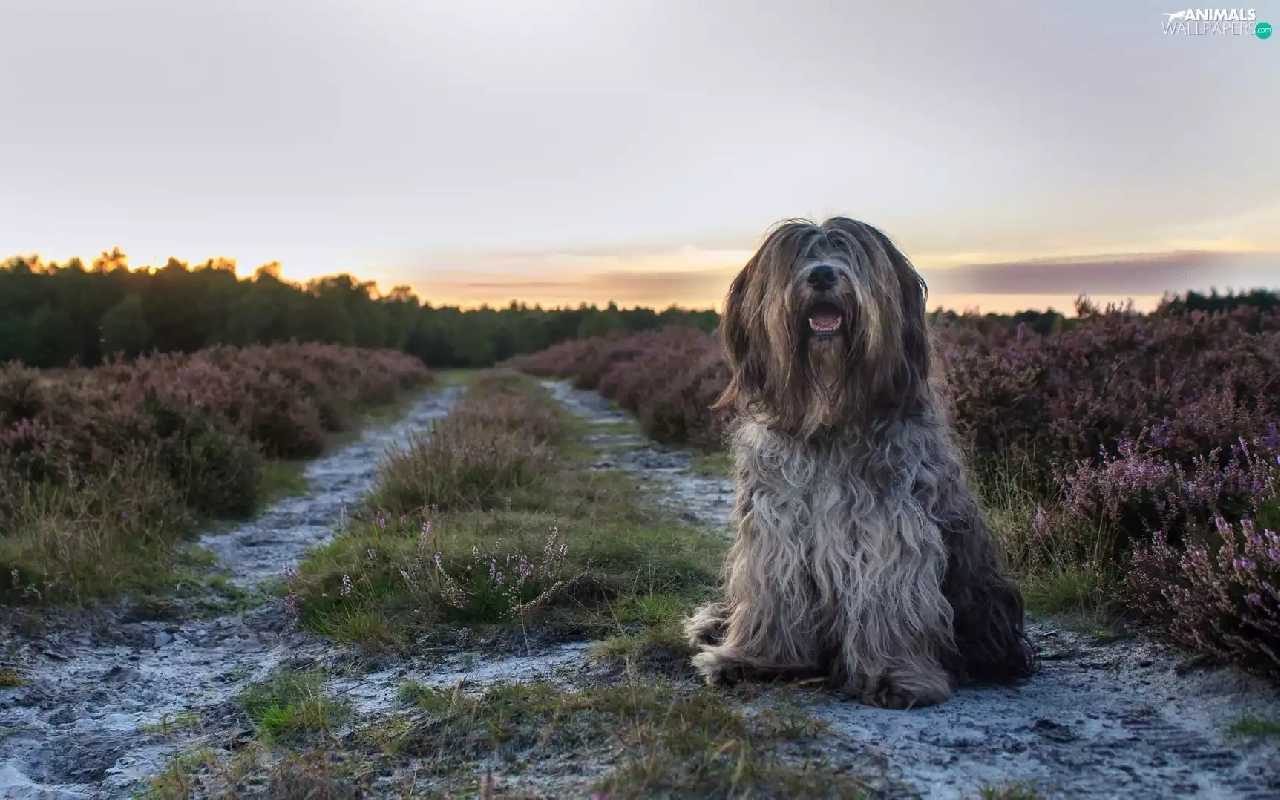 Way, heathers, pastoral, Schapendoes, dog