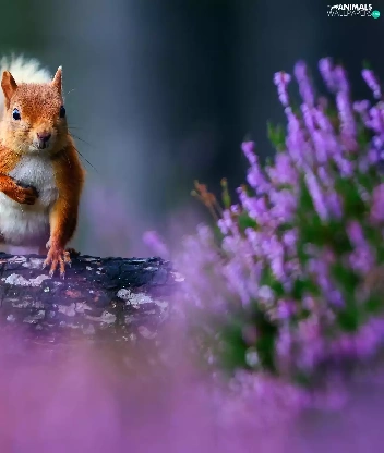 heathers, squirrel, trunk