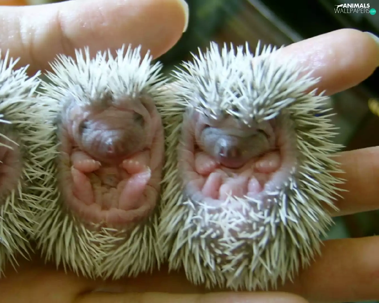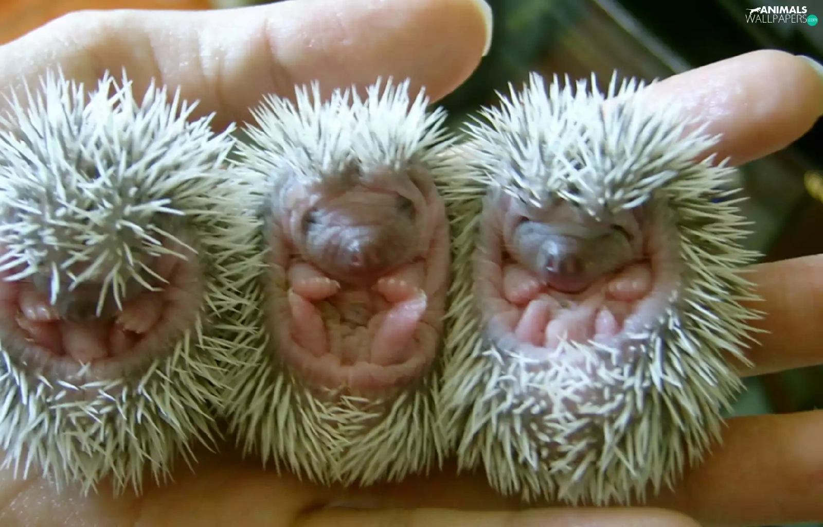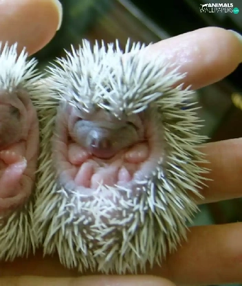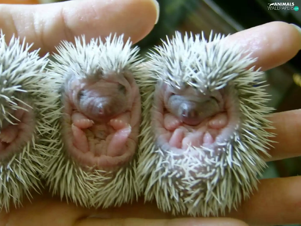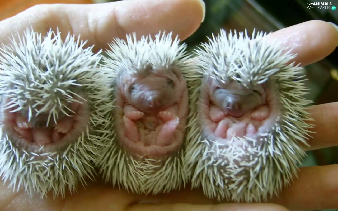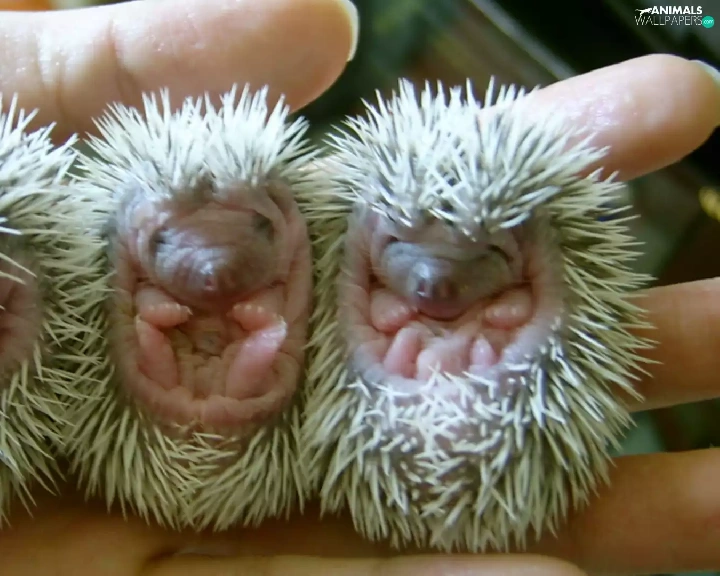 Three, hedgehogs, hand, little doggies
