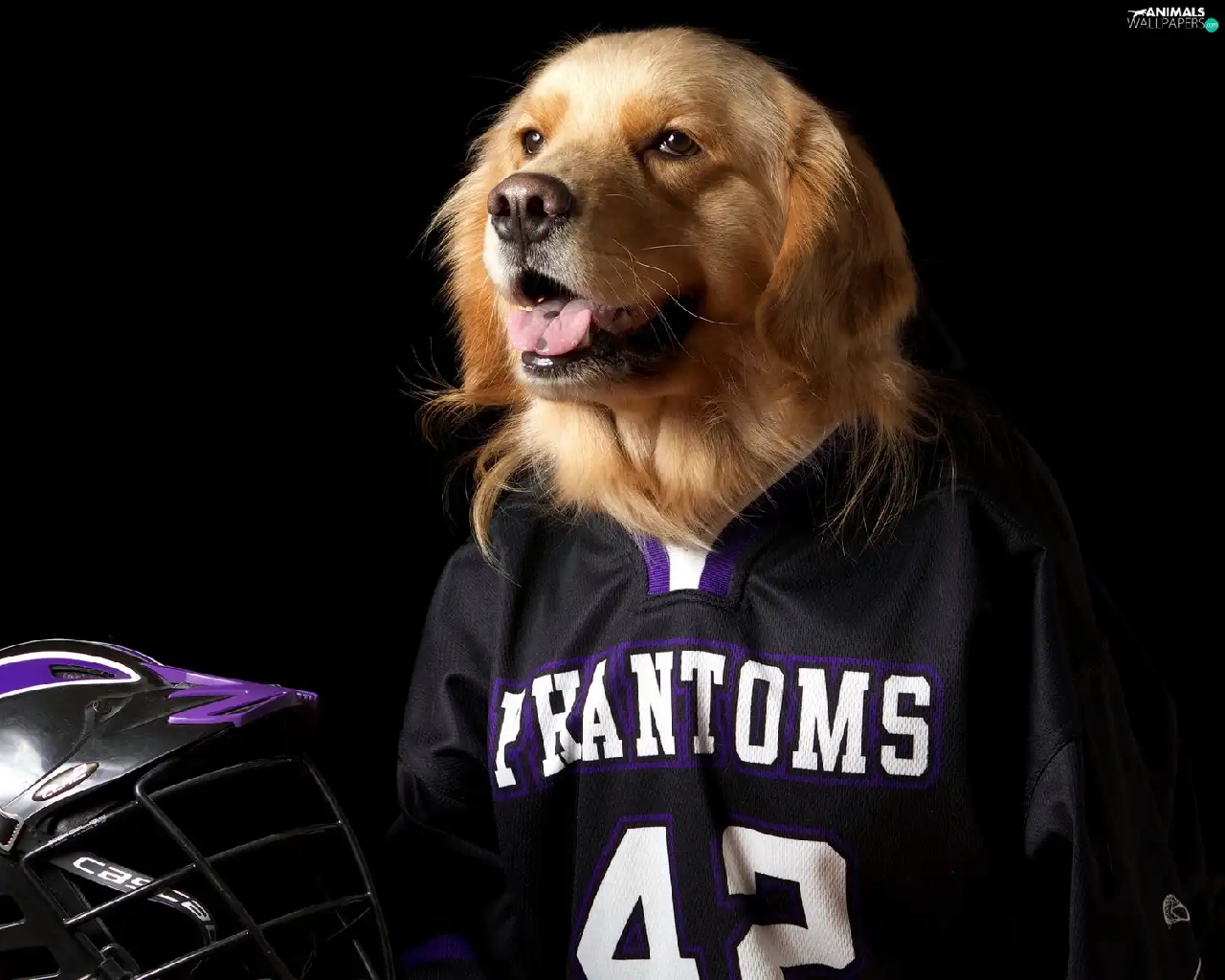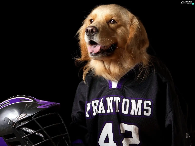 dog, Shirt, helmet, Golden Retriever