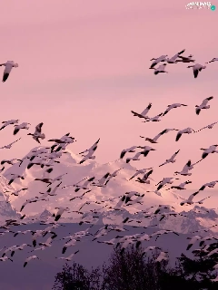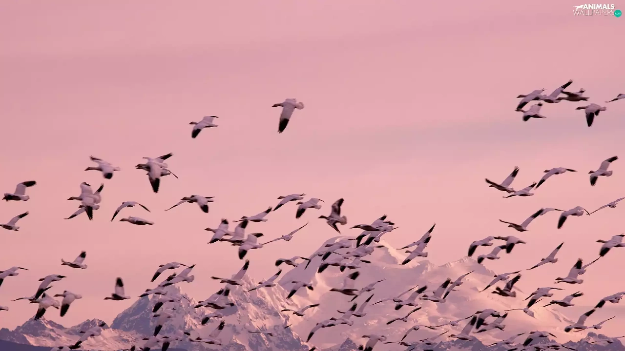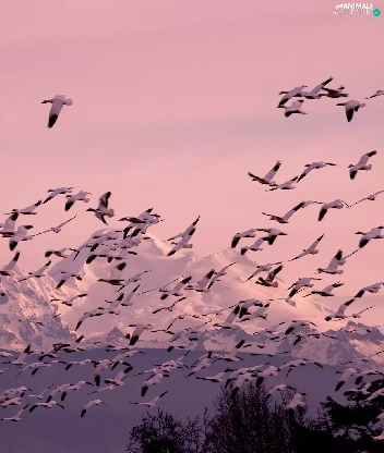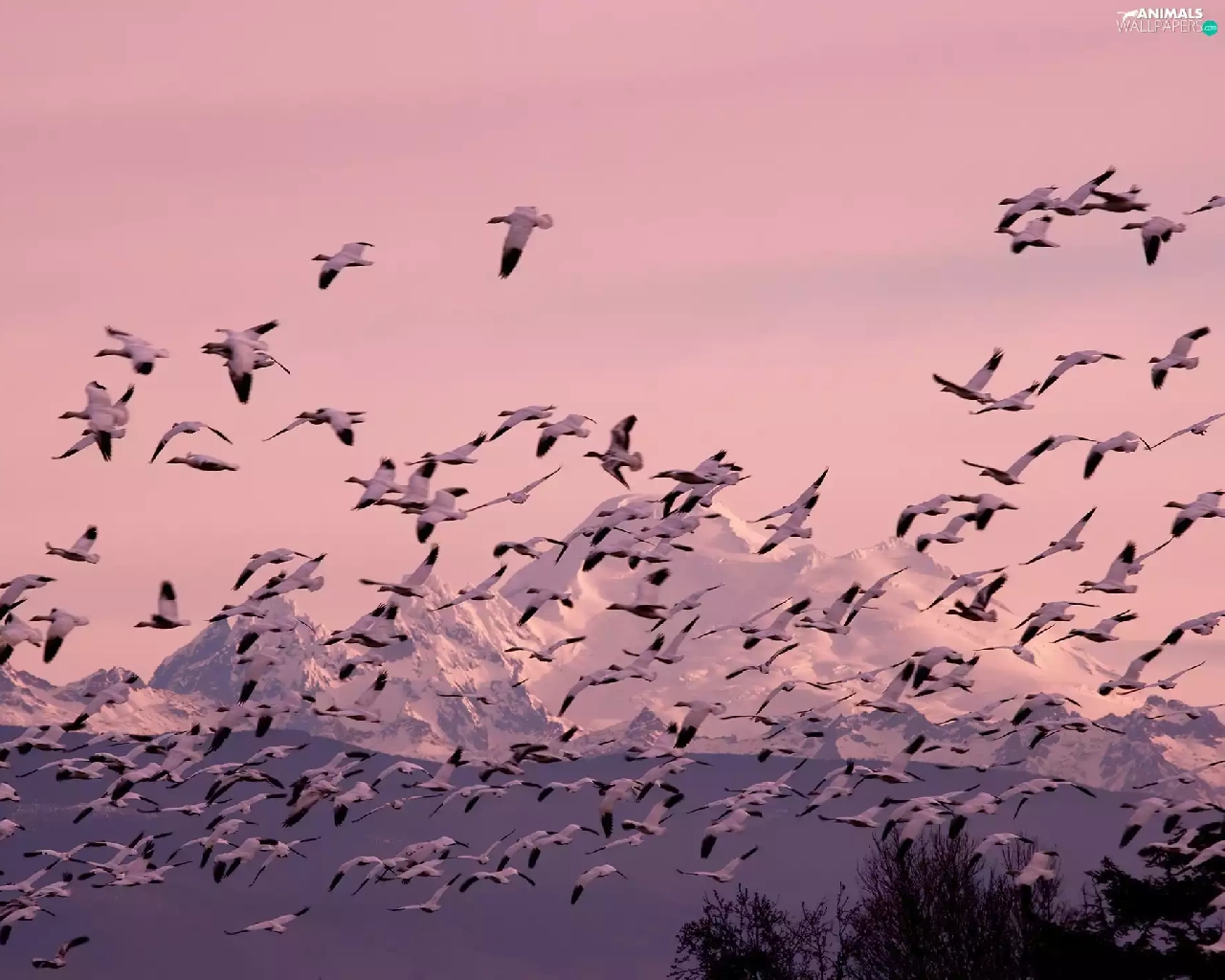 ducks, Mountains, forest, herd