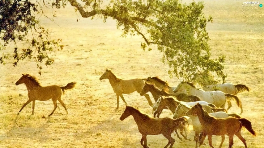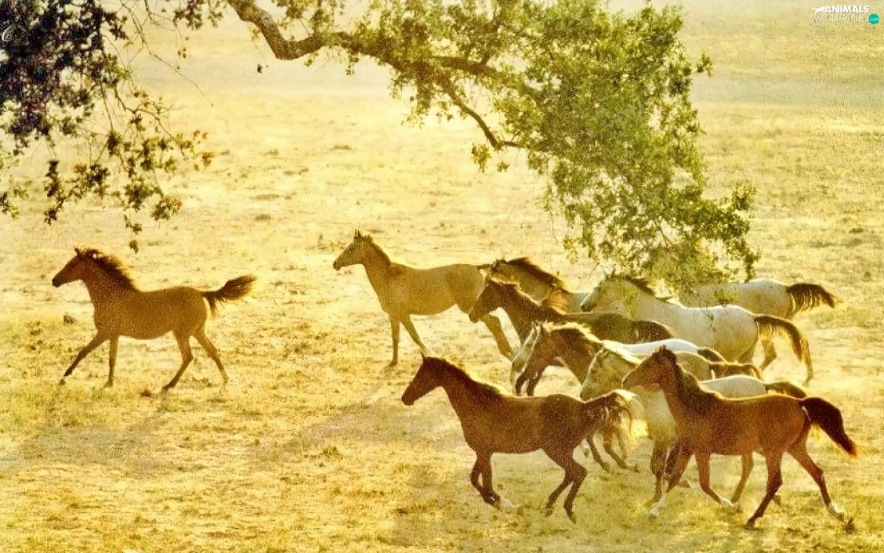 Horse, herd, Meadow, herd