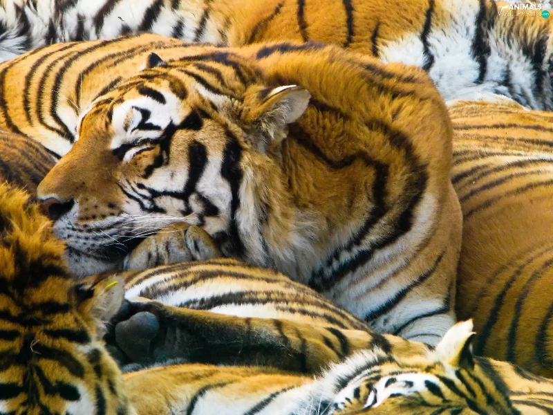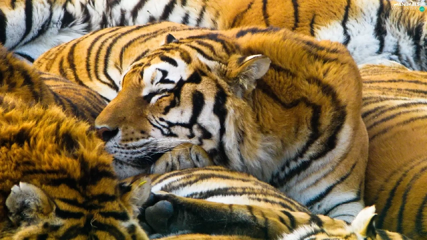 herd, Sleeping, tigress