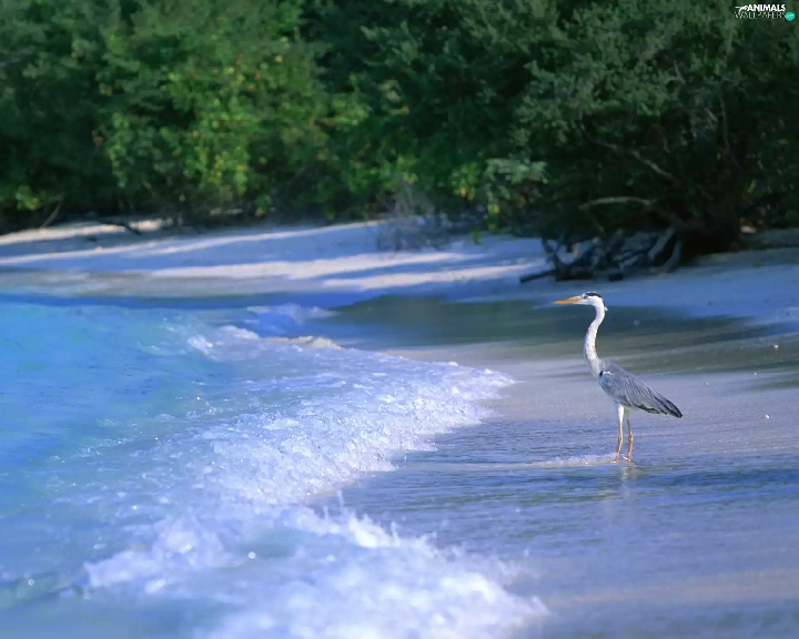 heron, sea, forest