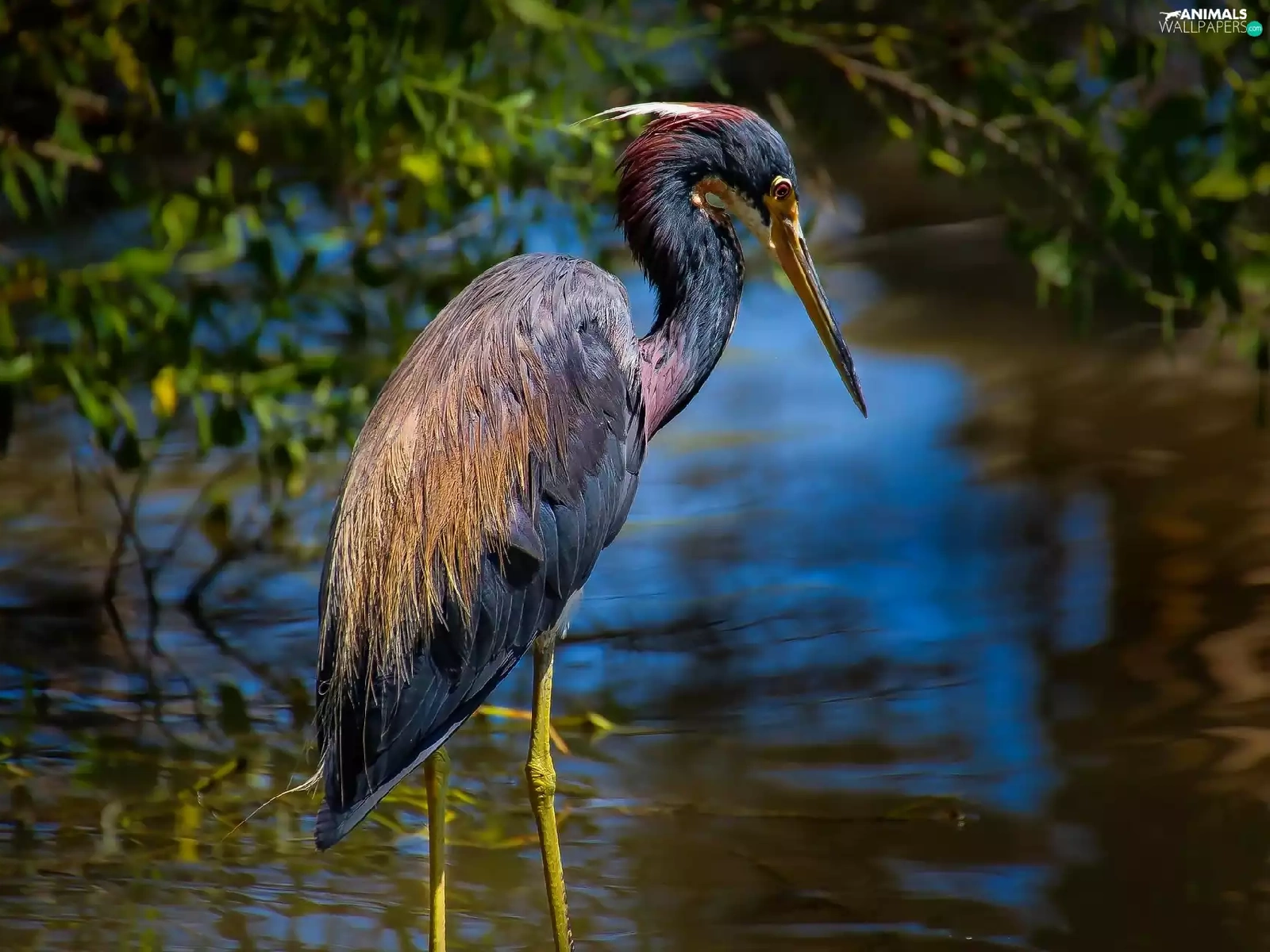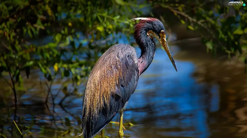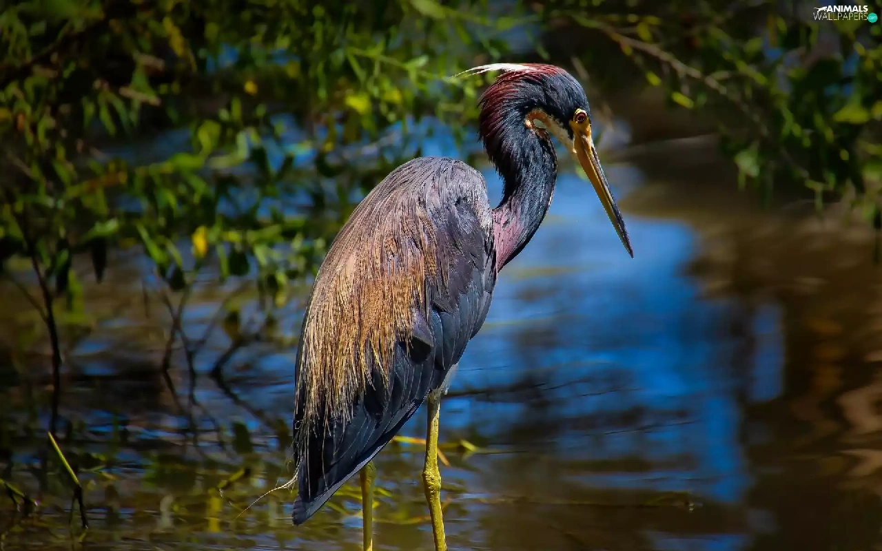 heron, water
