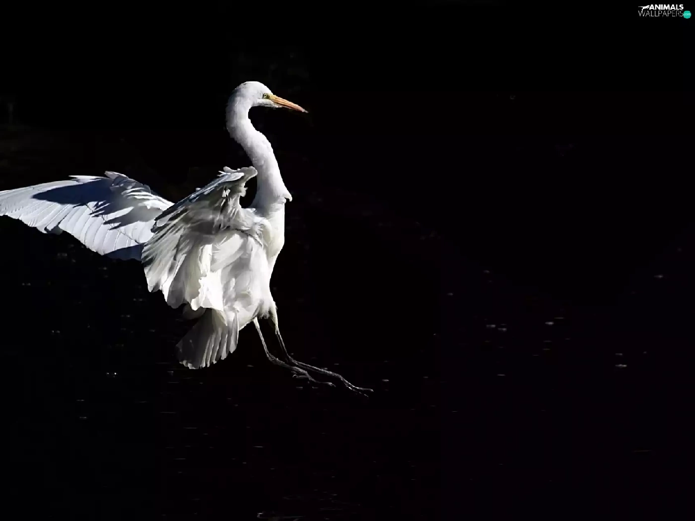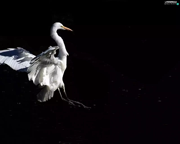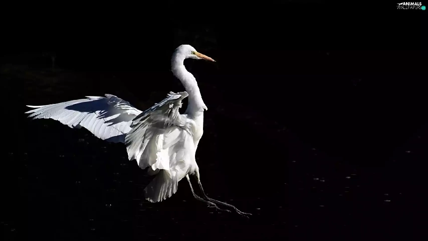 White, Black, background, heron