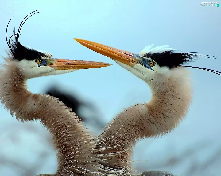 herons, Two, Blue