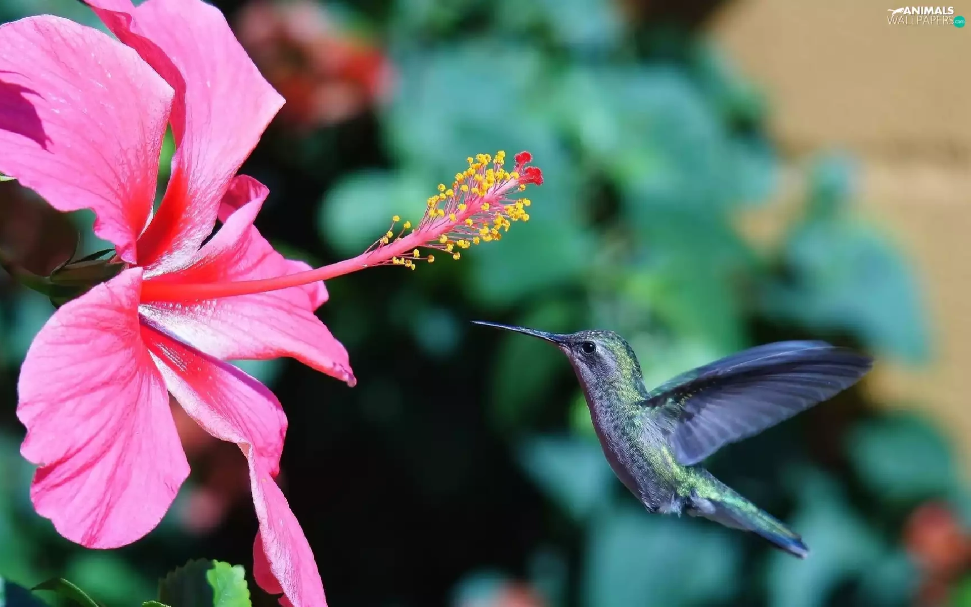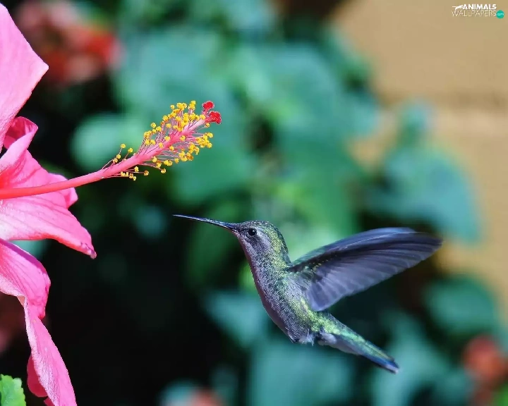 humming-bird, Pink, hibiskus