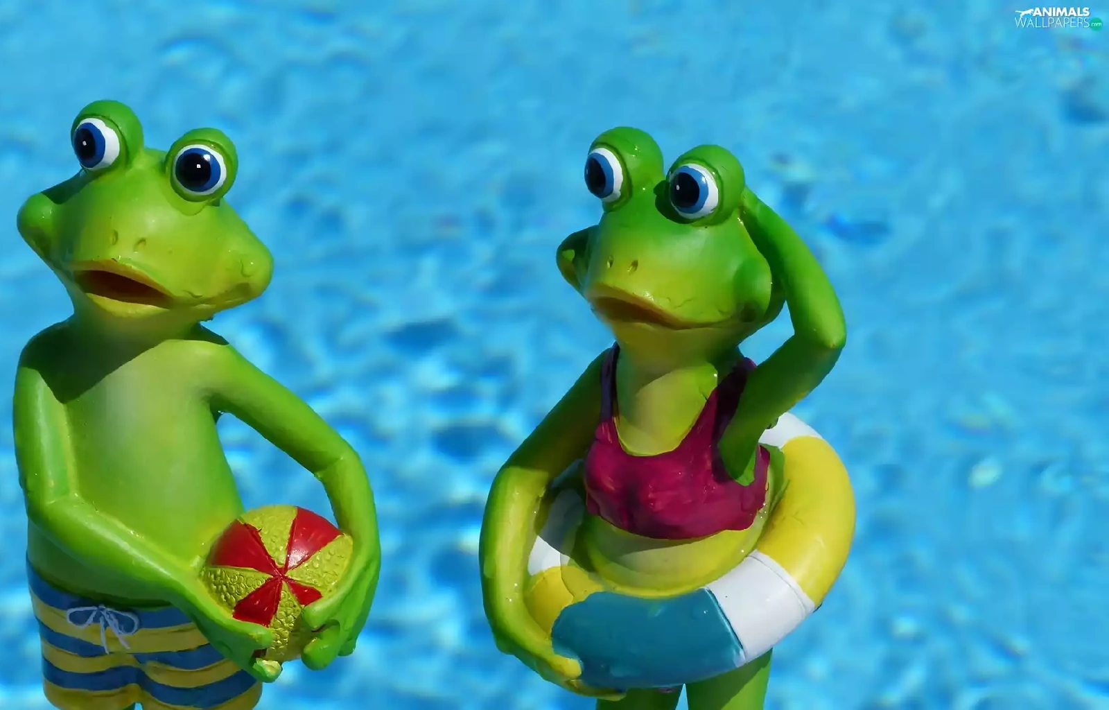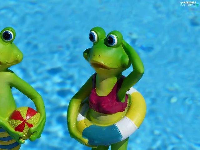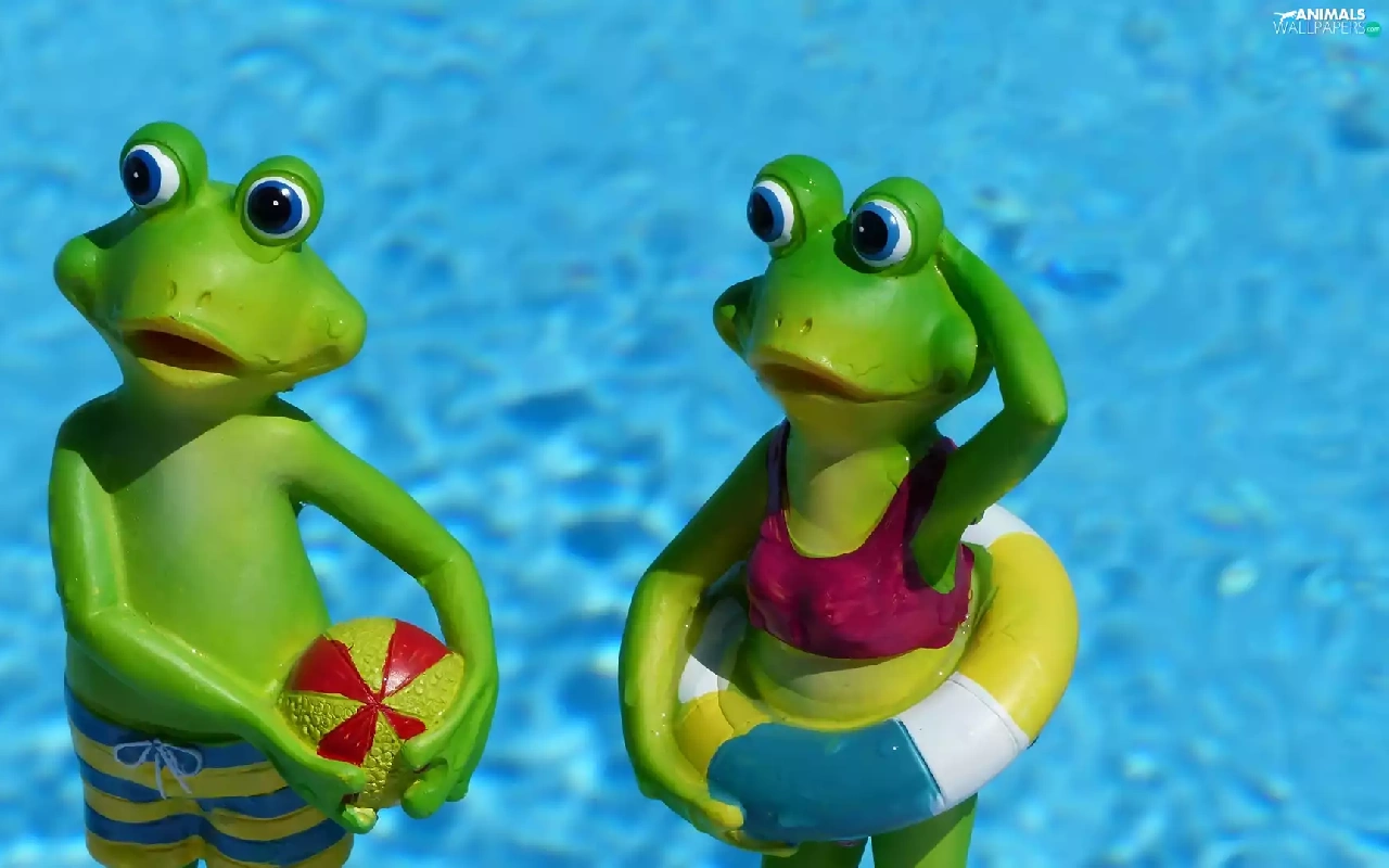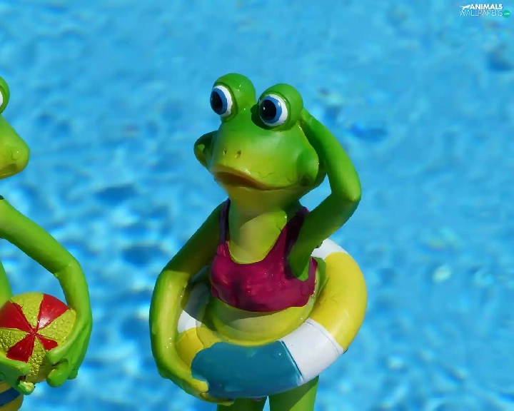Funny, holiday, frogs, water, figures