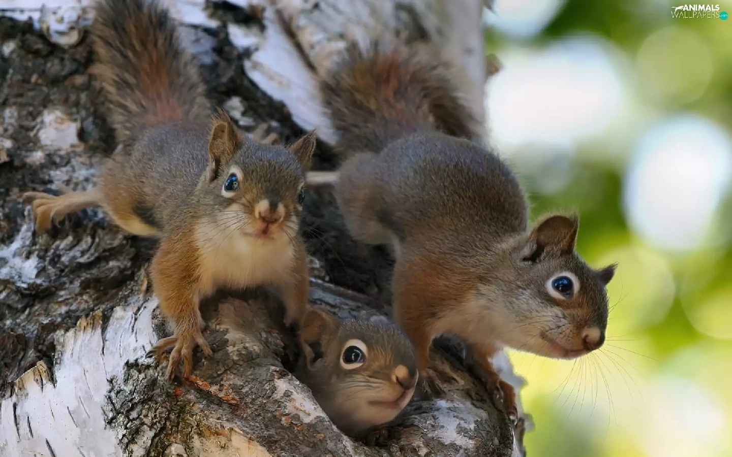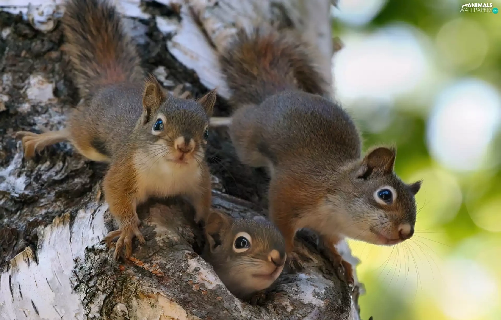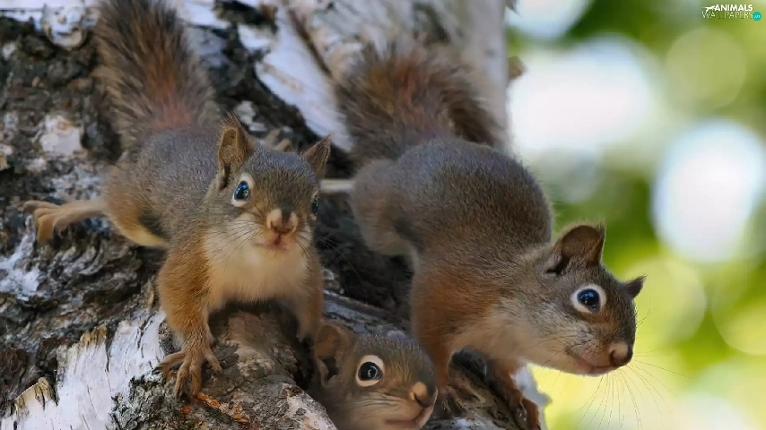 hollow, Three, squirrels