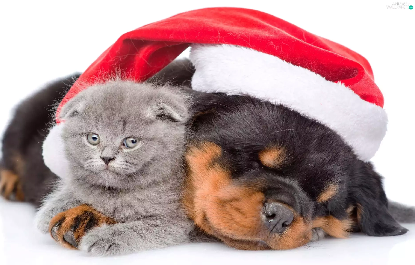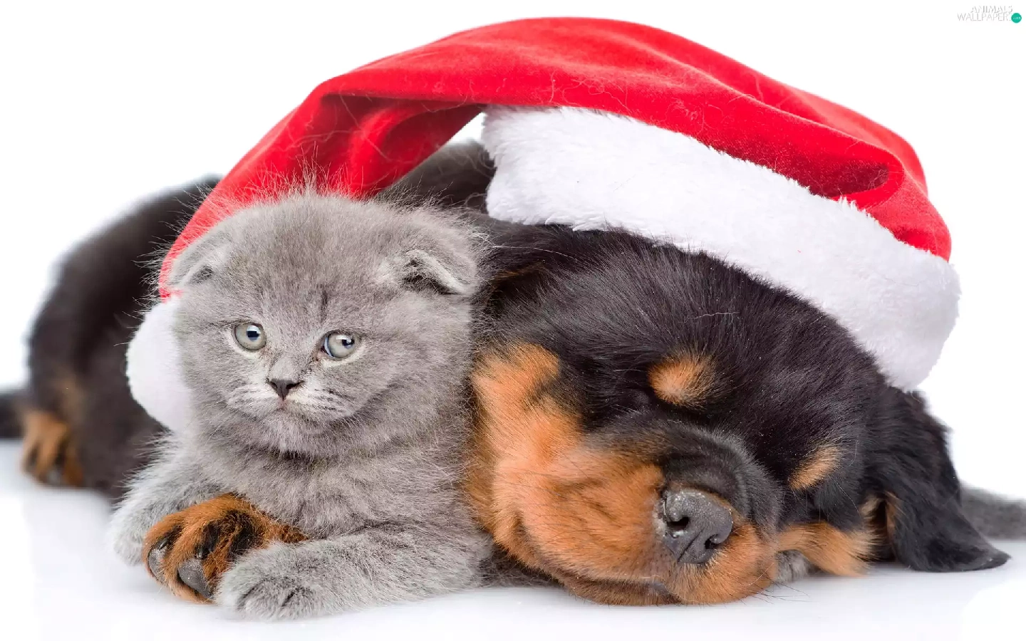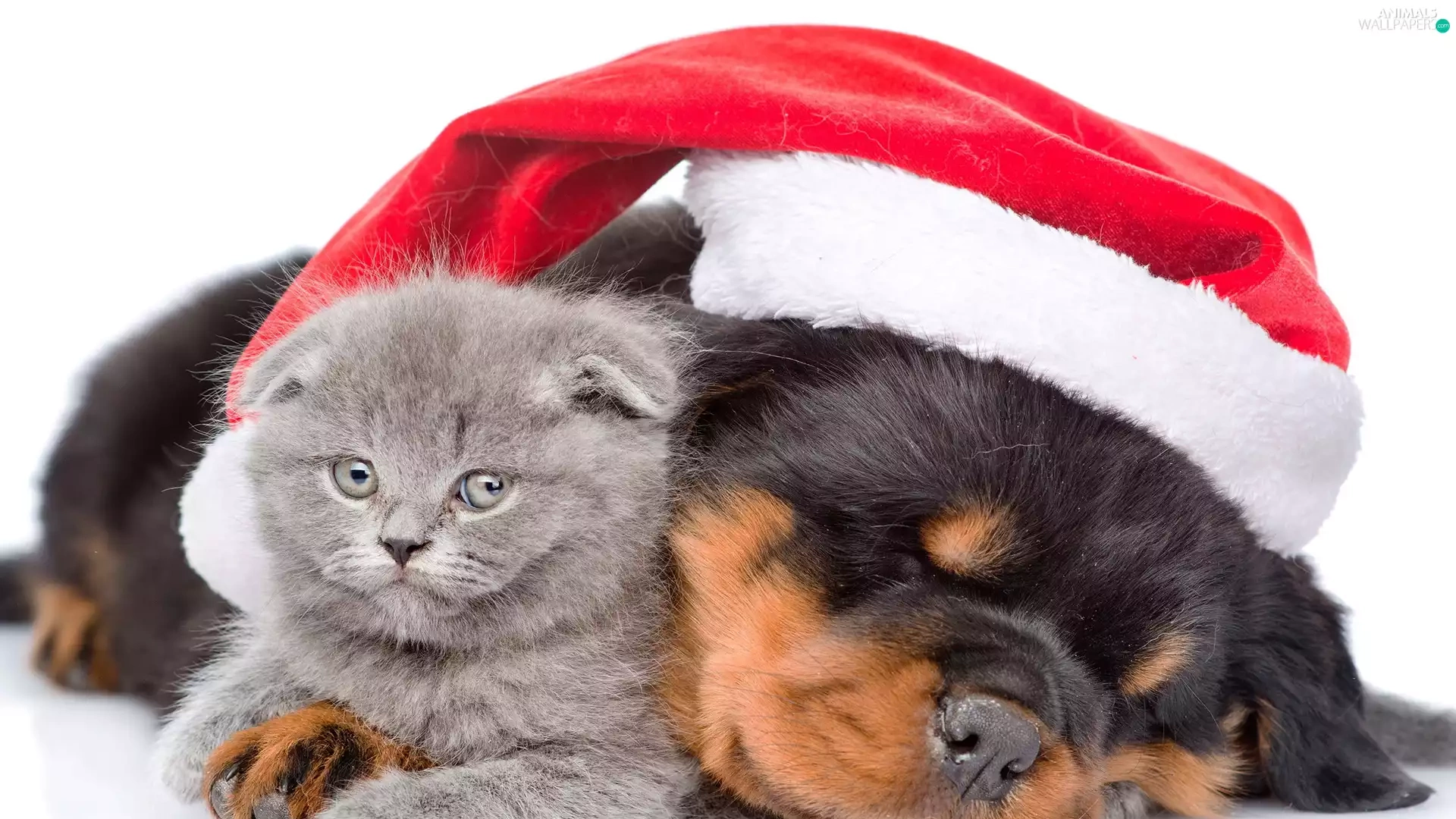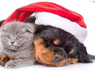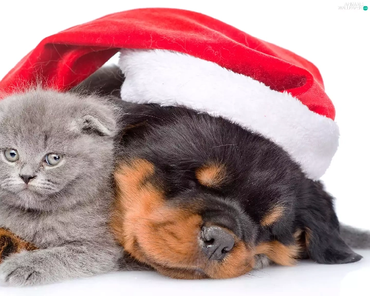 Scottish Fold, dog, Holy, Nicholas, Hat, cat