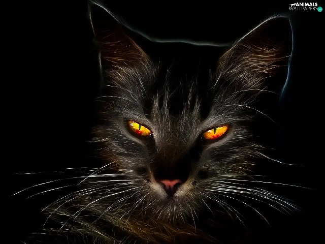 Eyes, muzzle, background, honey, cat, Black, Fractalius