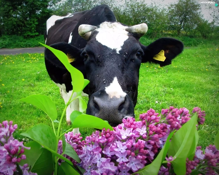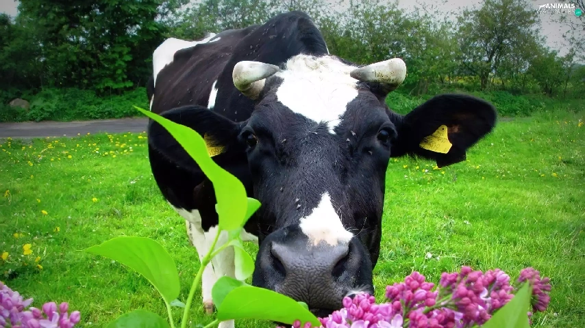 Cow, without, pasture, horns