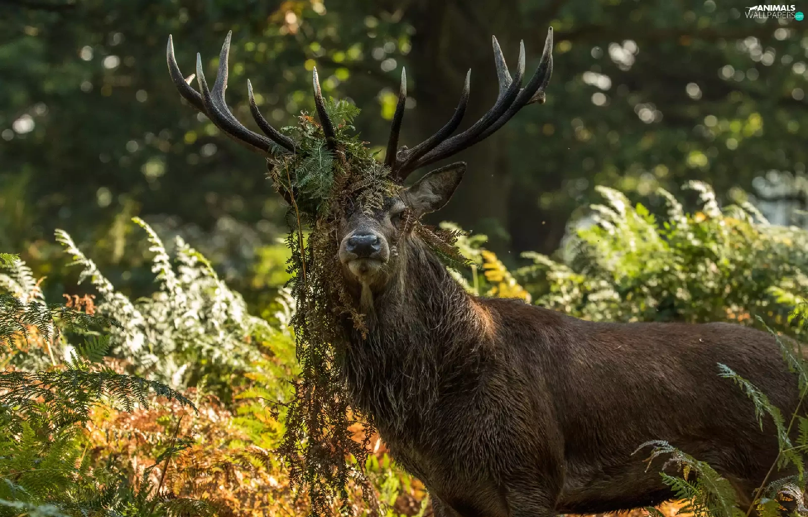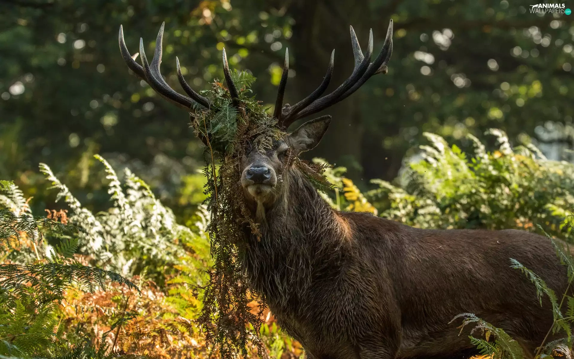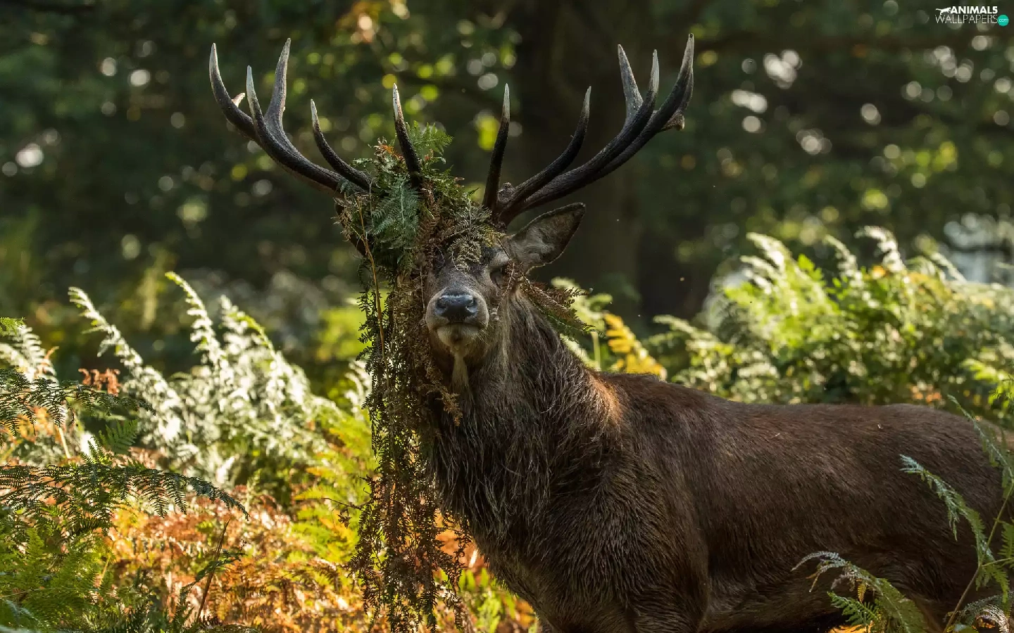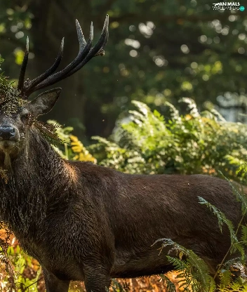 deer, Plants, fern, horns
