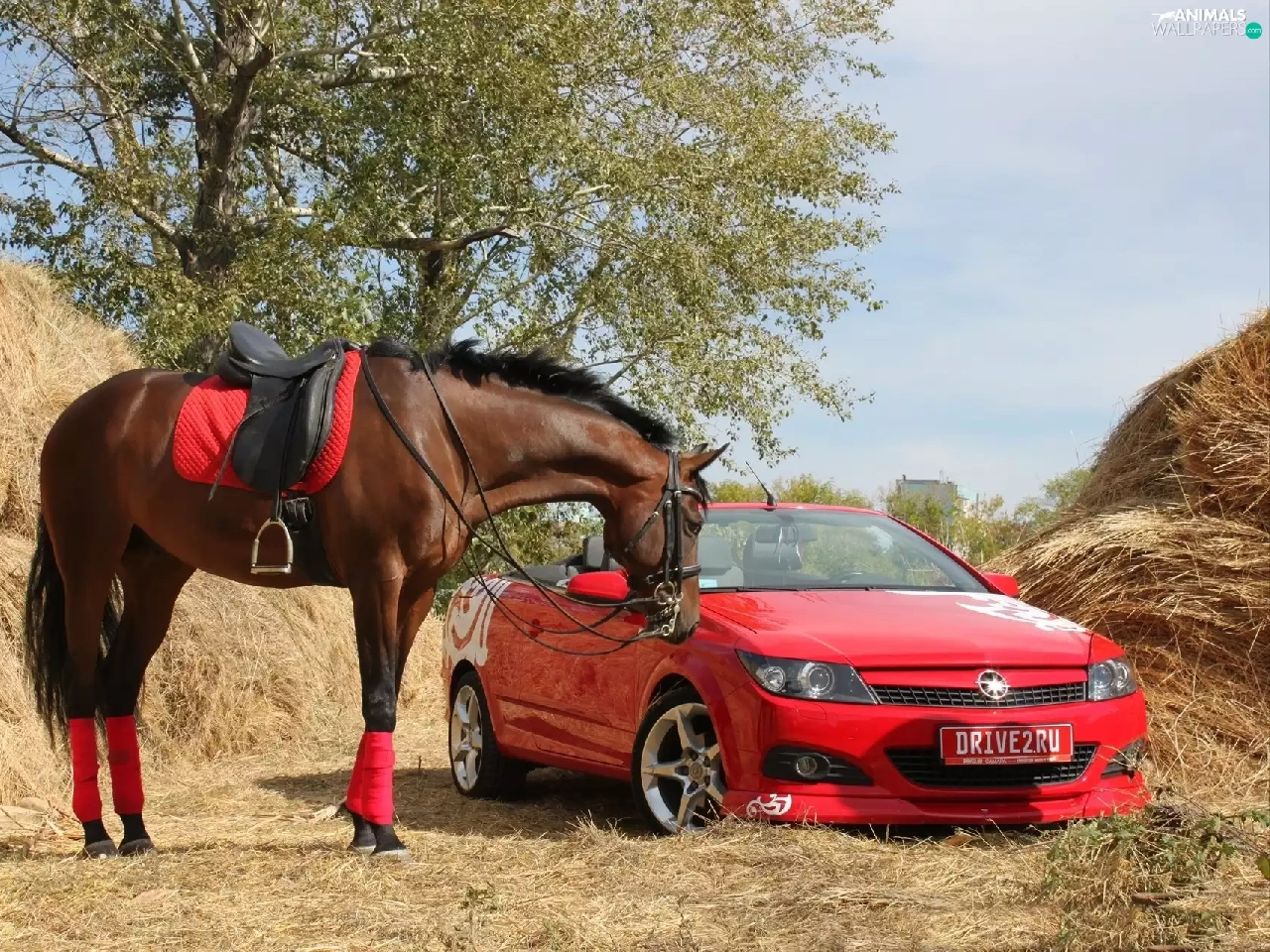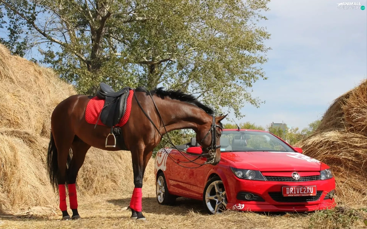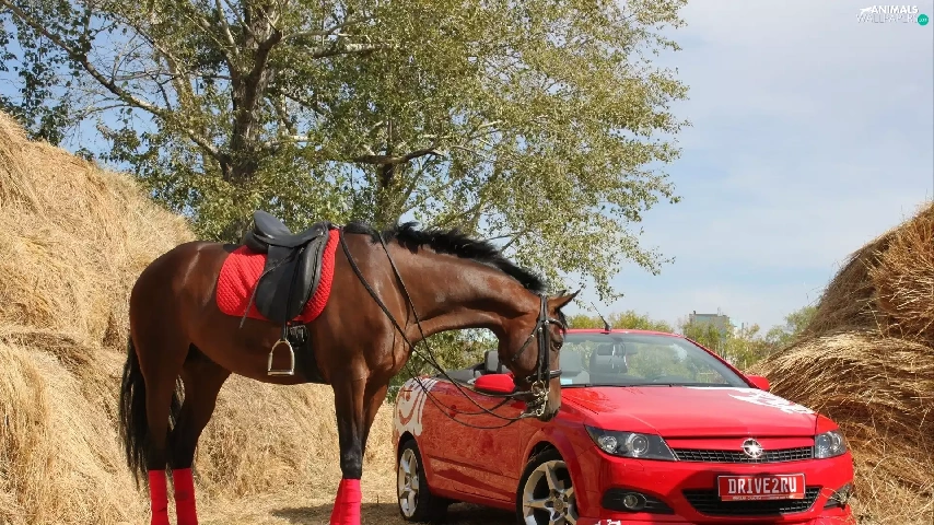 Horse, Red, car