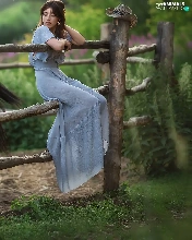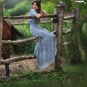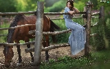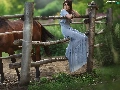 Blue, Women, Fance, Horse, dress, light brown
