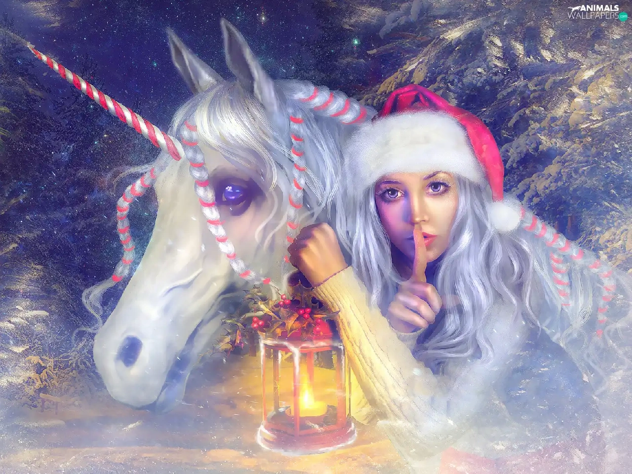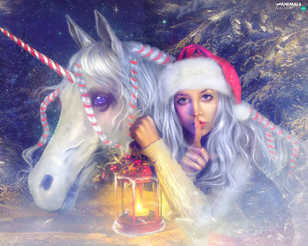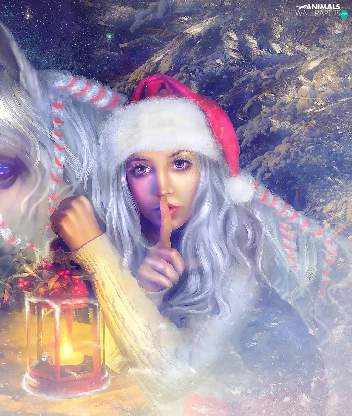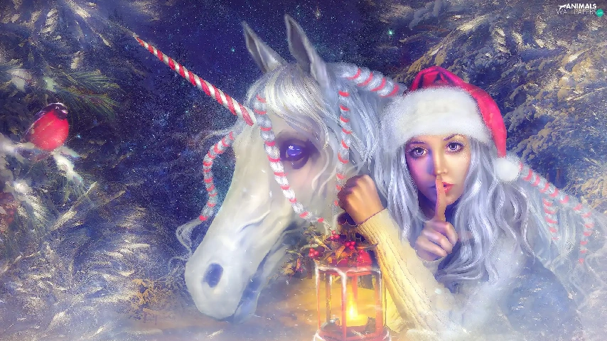 Nicholas, lantern, graphics, unicorn, Twigs, Hat, Women, Horse