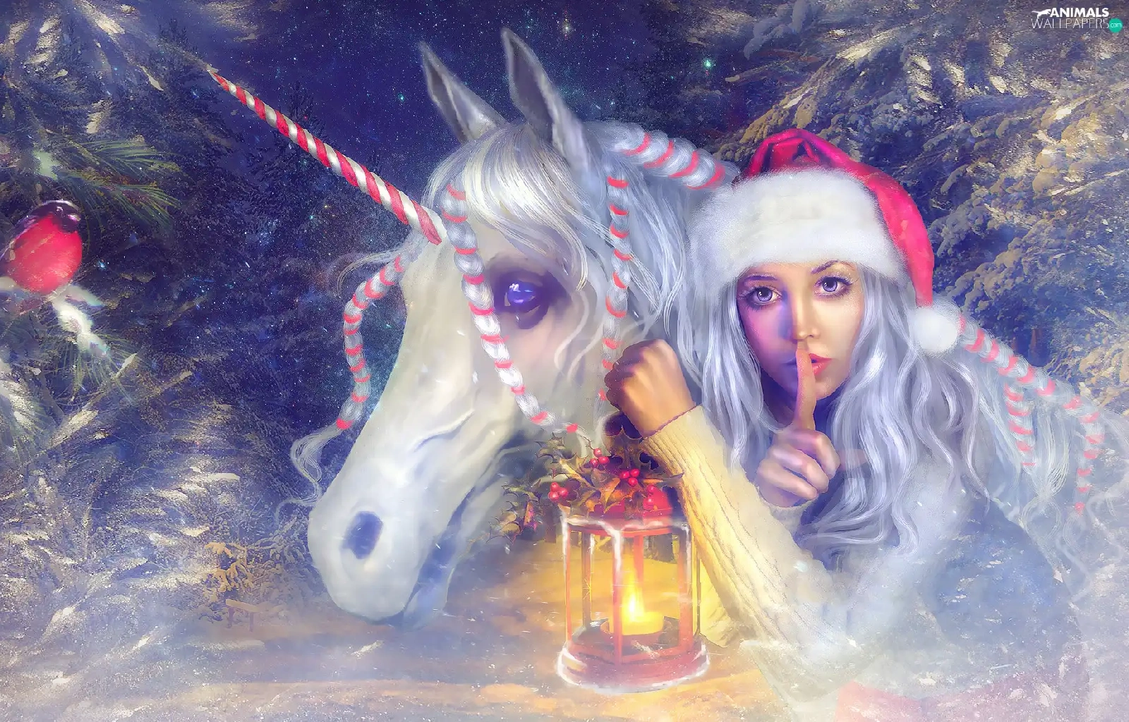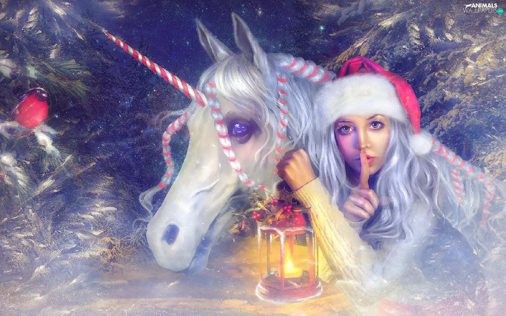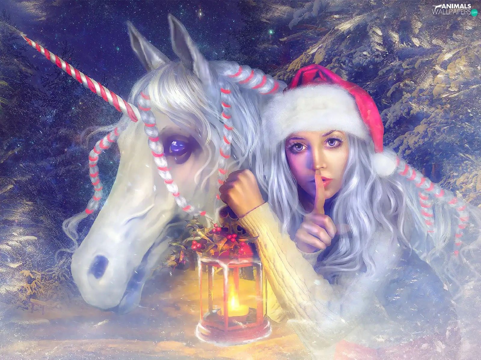 Nicholas, lantern, graphics, unicorn, Twigs, Hat, Women, Horse