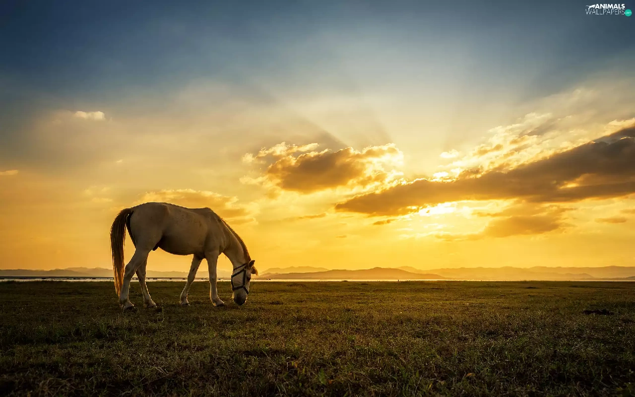 Meadow, Great Sunsets, Horse