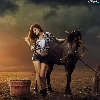 Women, Field, clouds, Horse