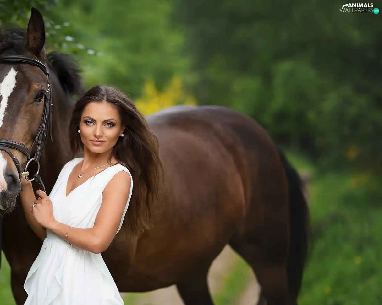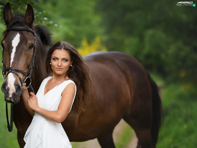 Women, dress, Horse, White