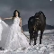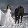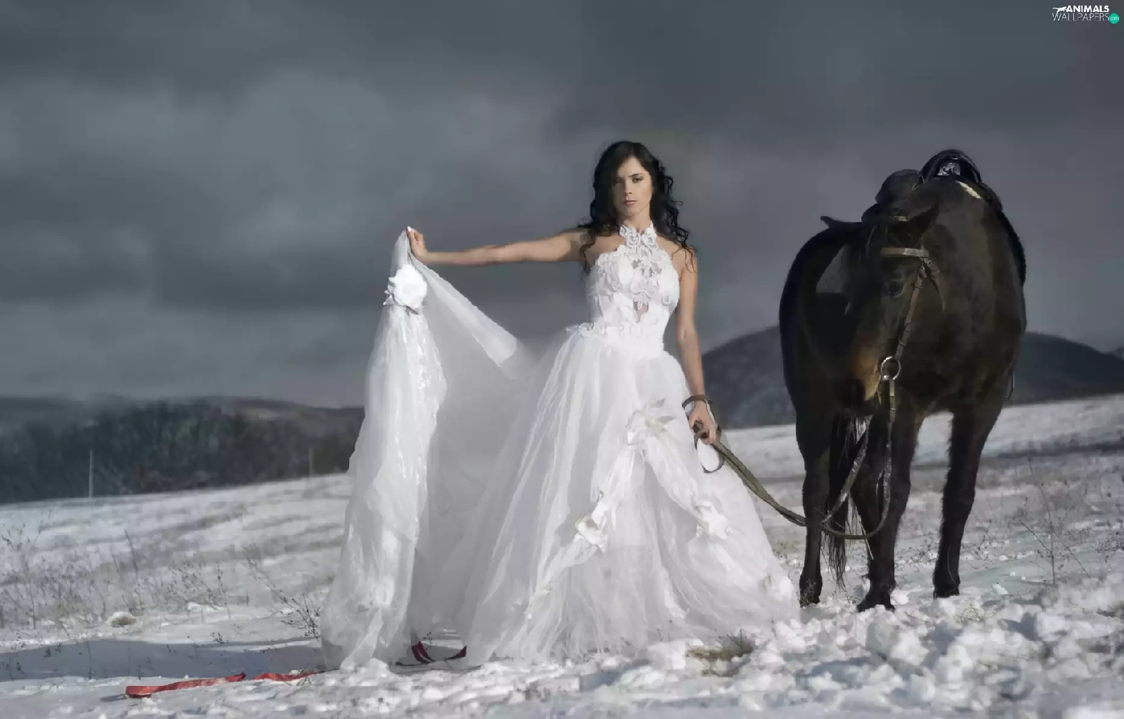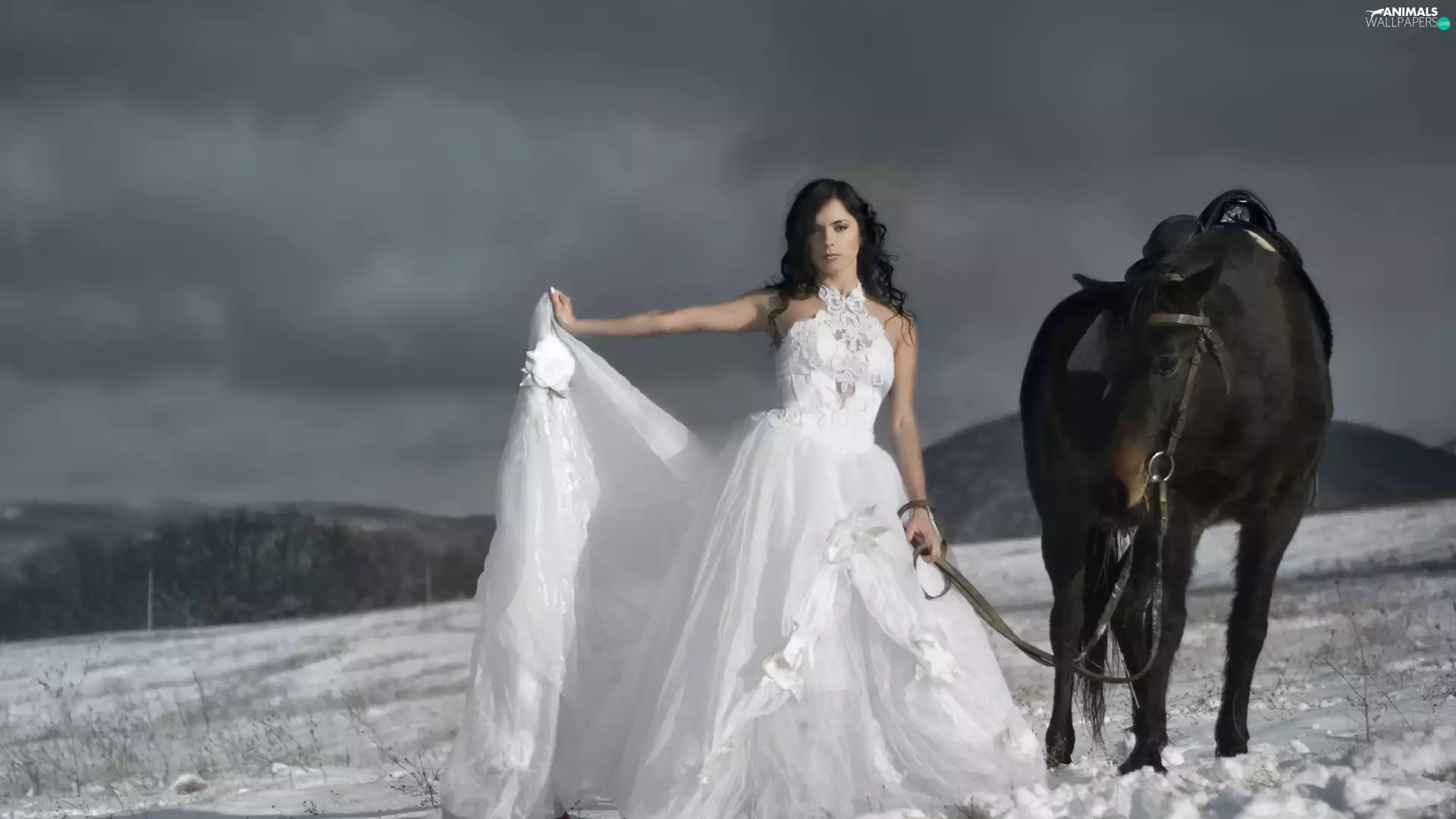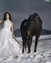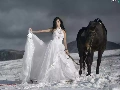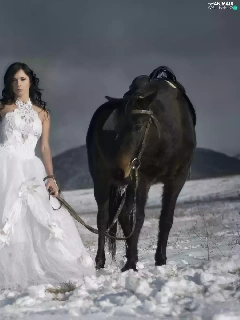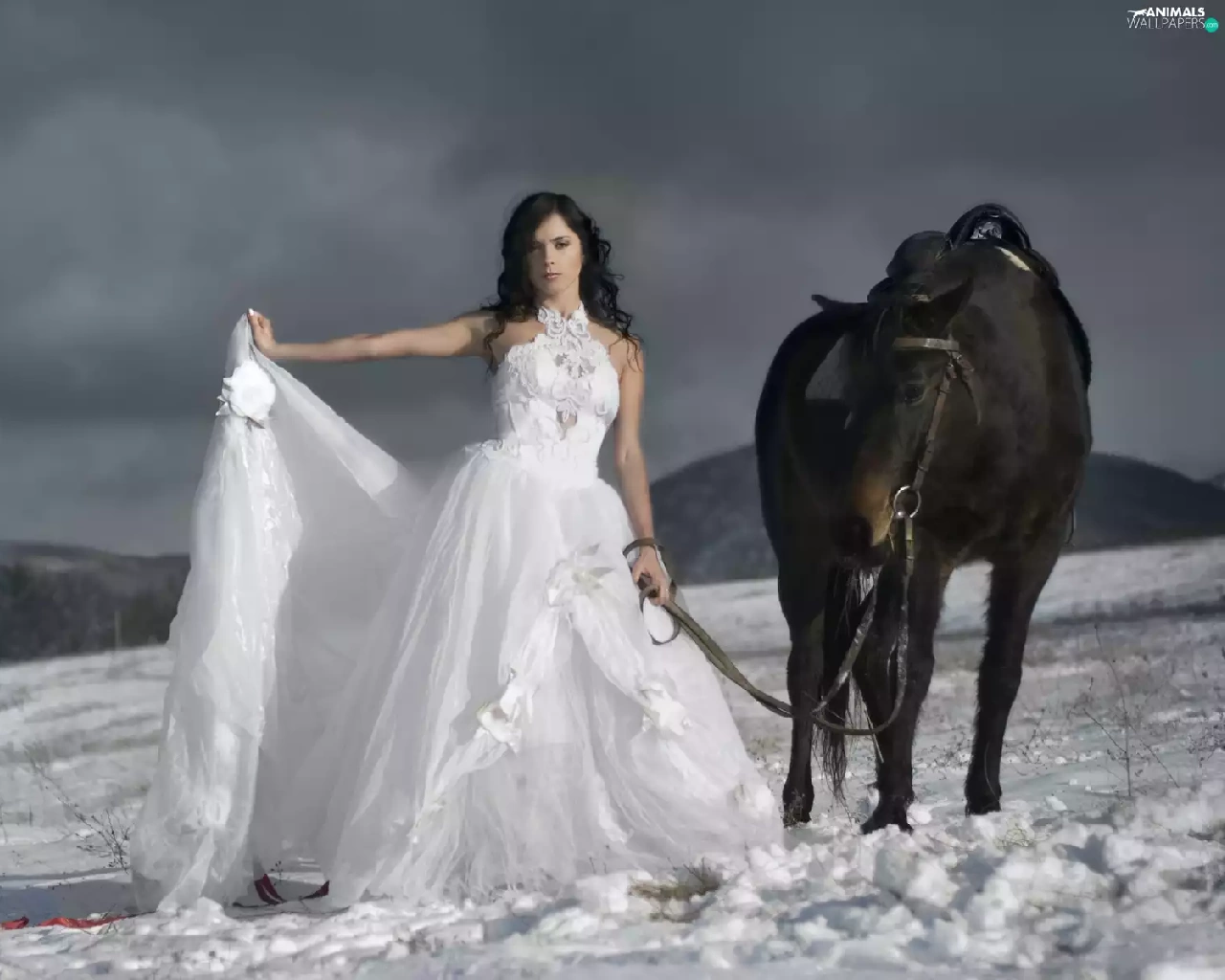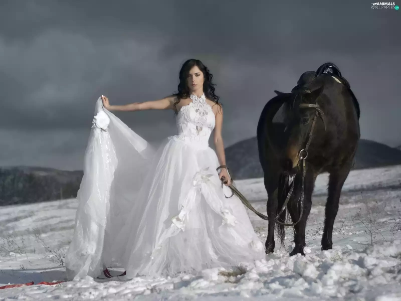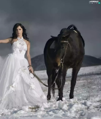 Women, Mountains, winter, Horse