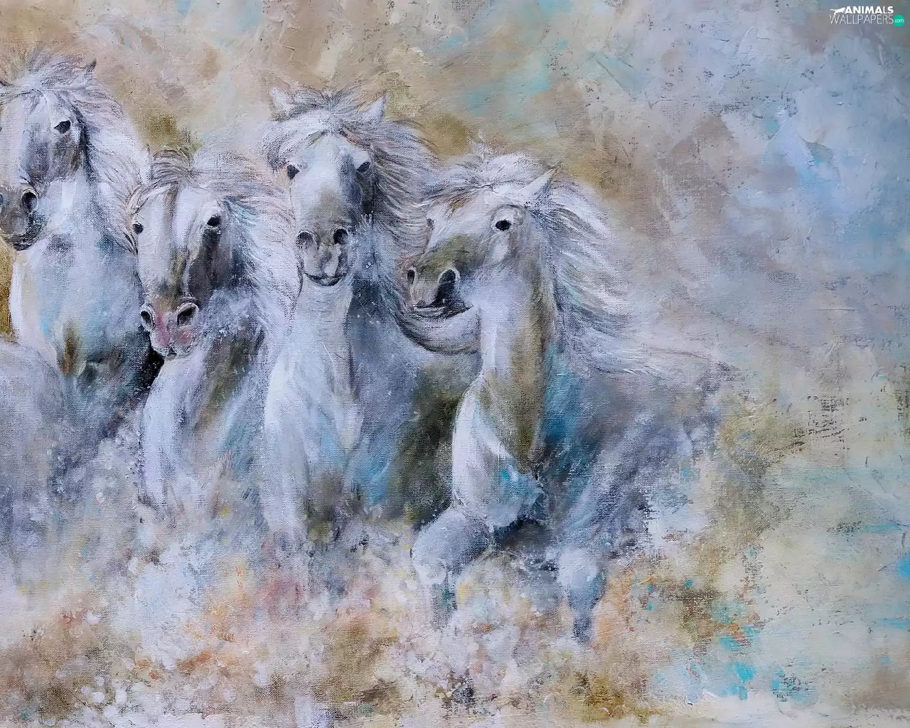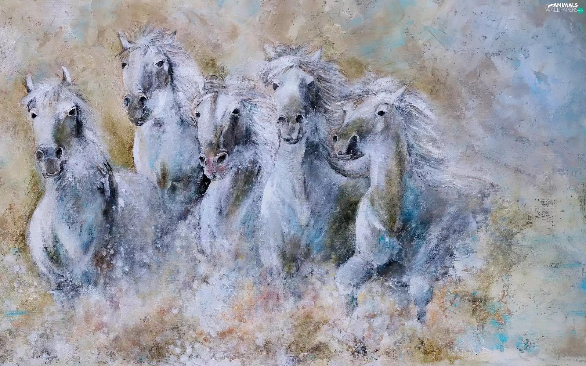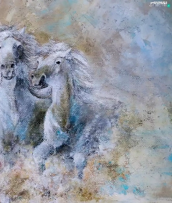 five, water, graphics, horses