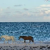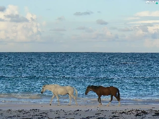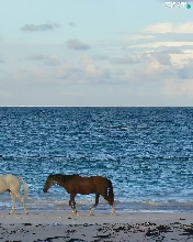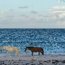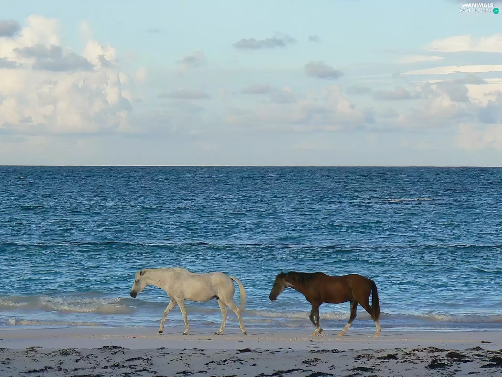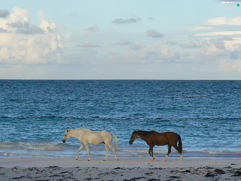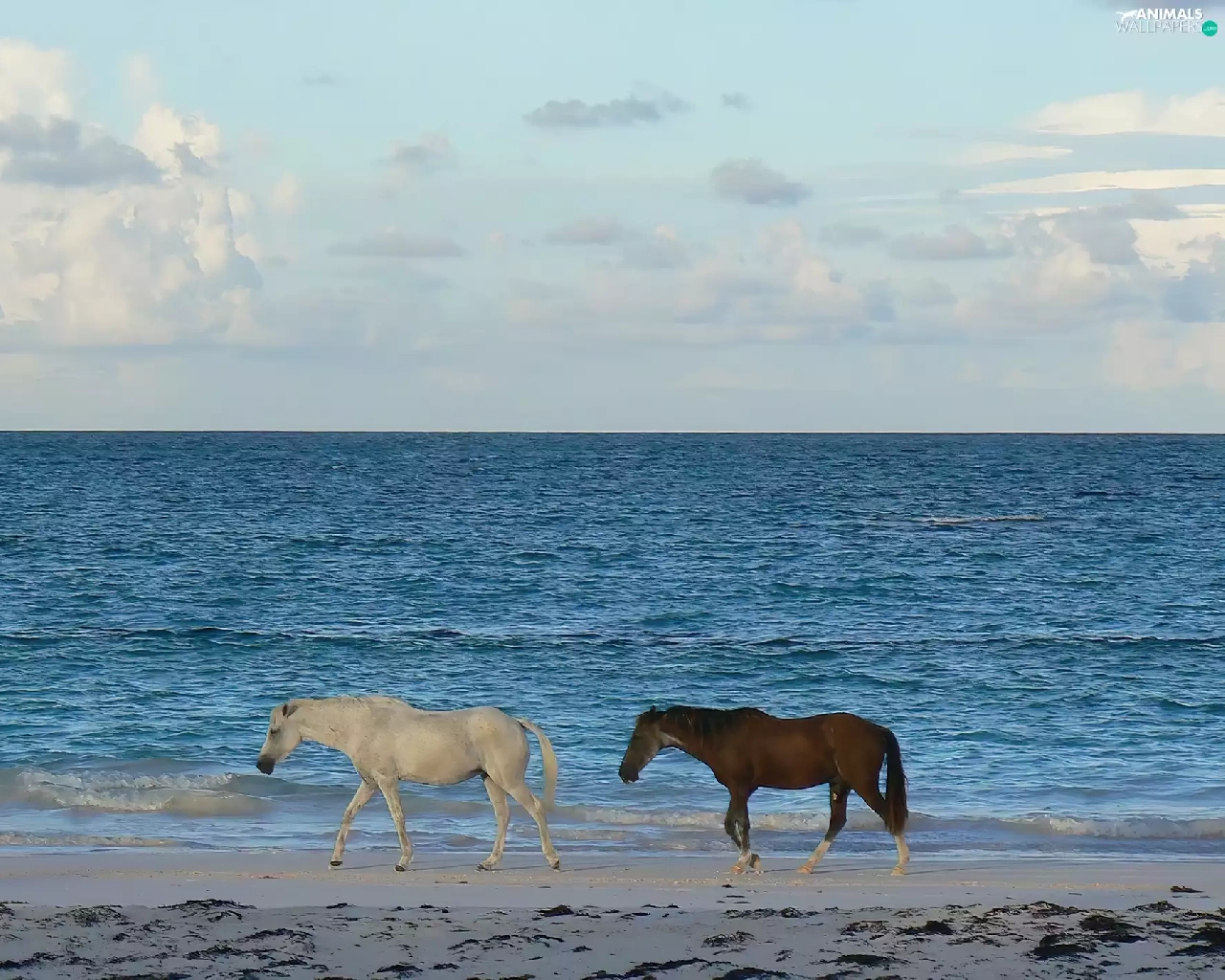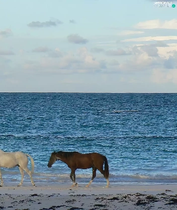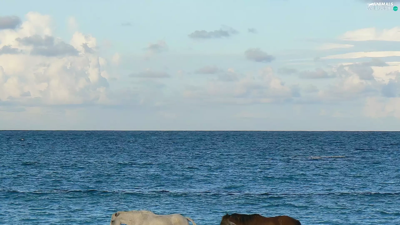 sea, Two cars, horses