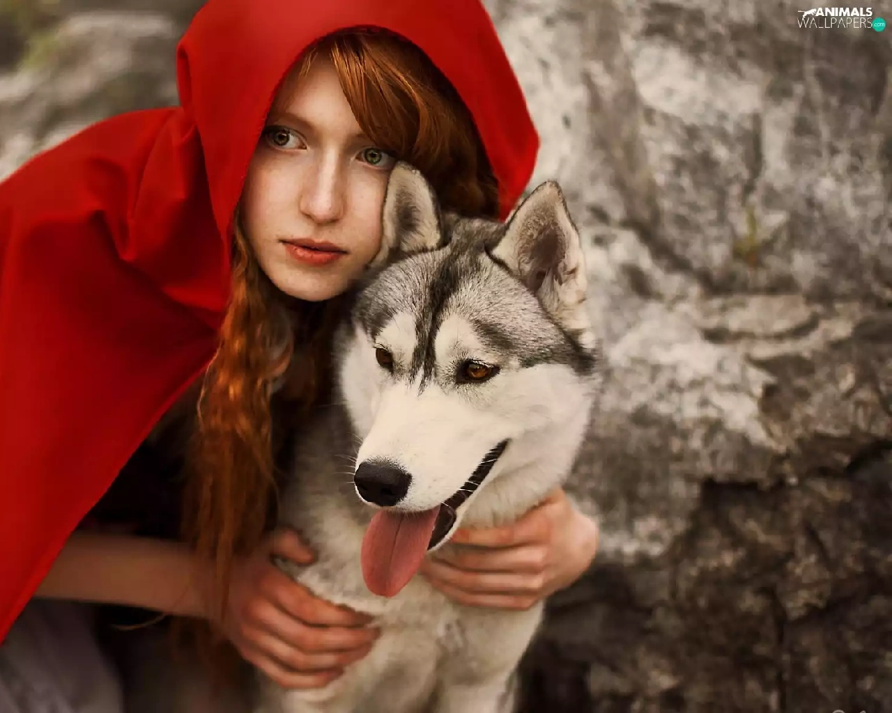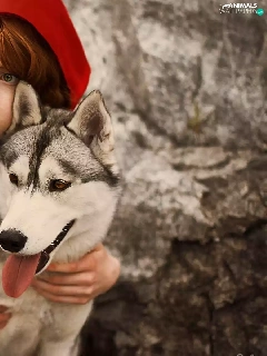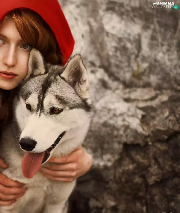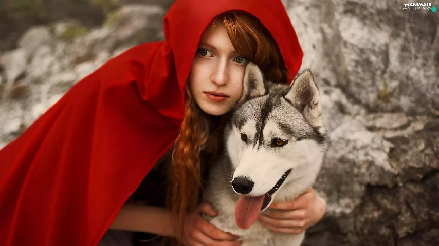 dog, Husky, red hot, cape, Women