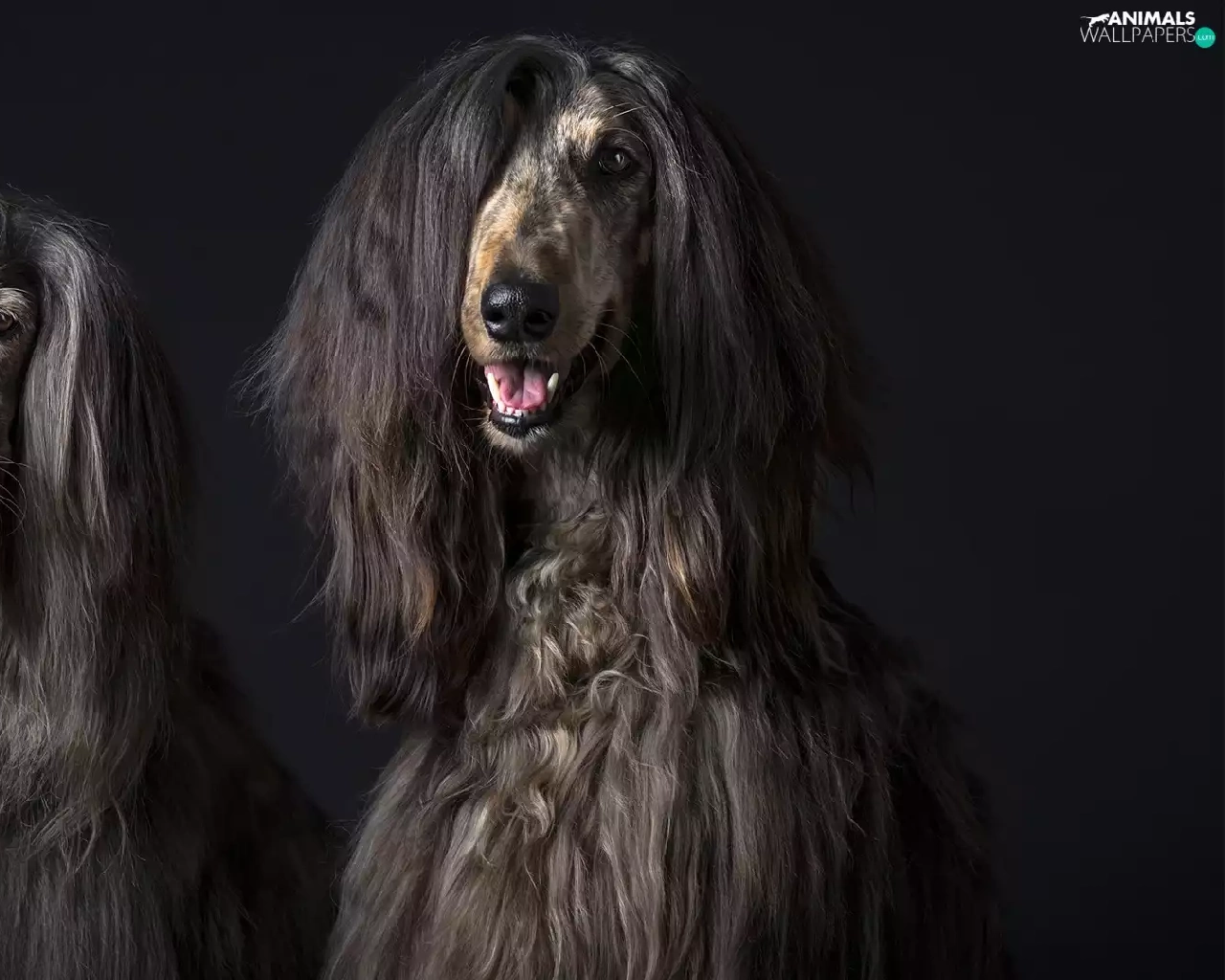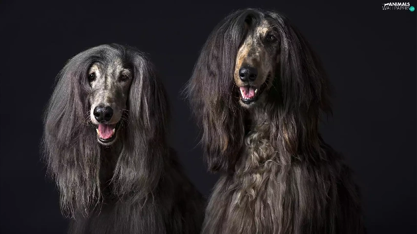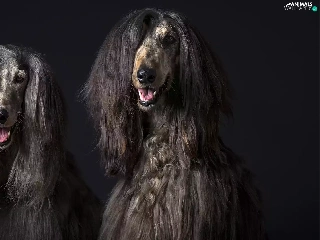 Afghan Hounds, Black, background, portrait