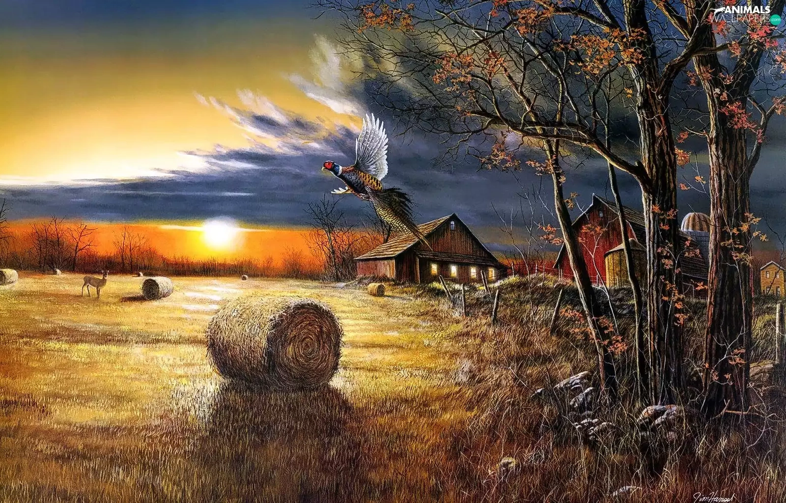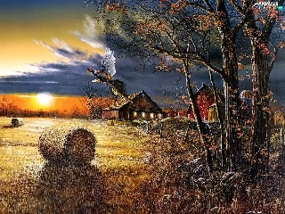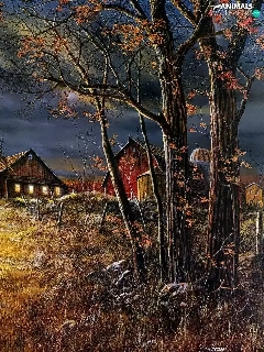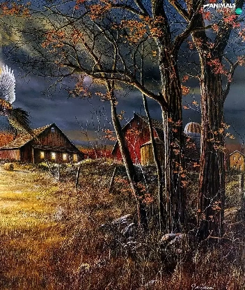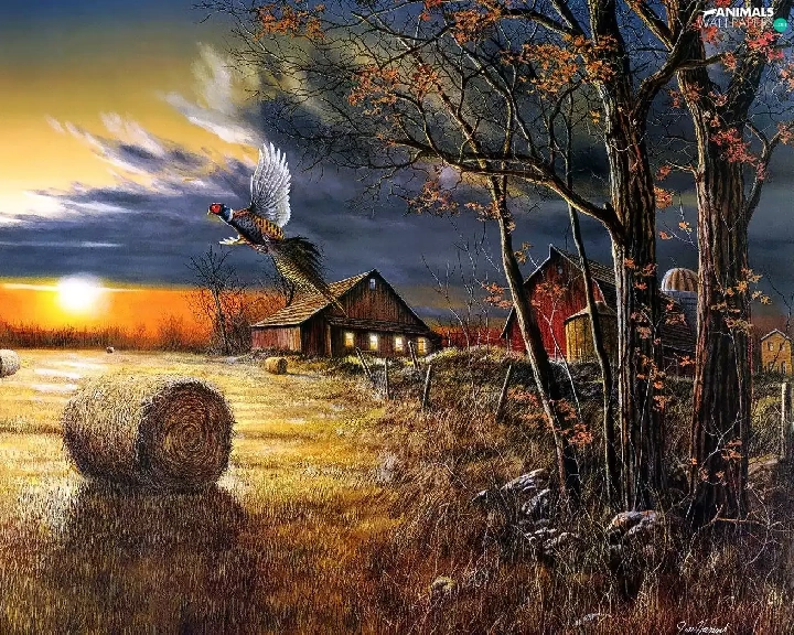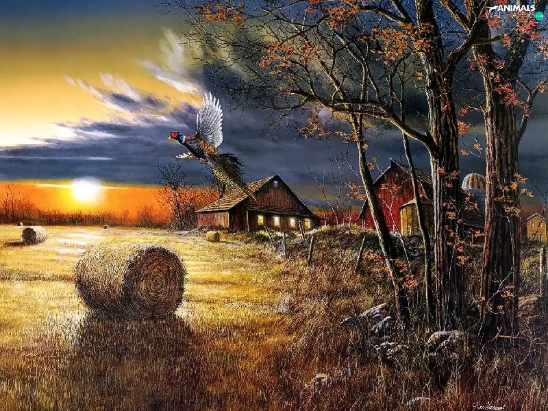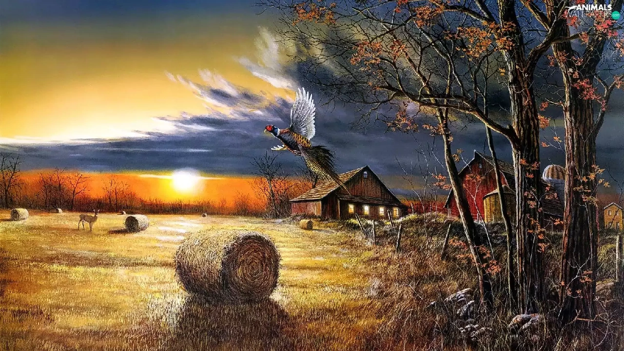 field, picture, pheasant, house, roe, country