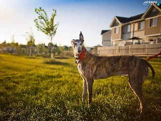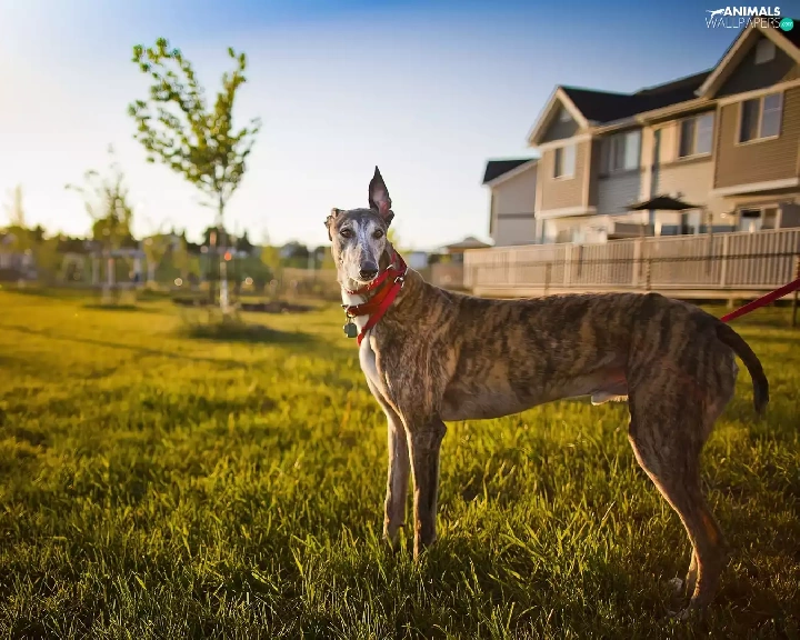 house, dog, grass