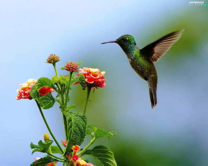 humming-bird, Flowers
