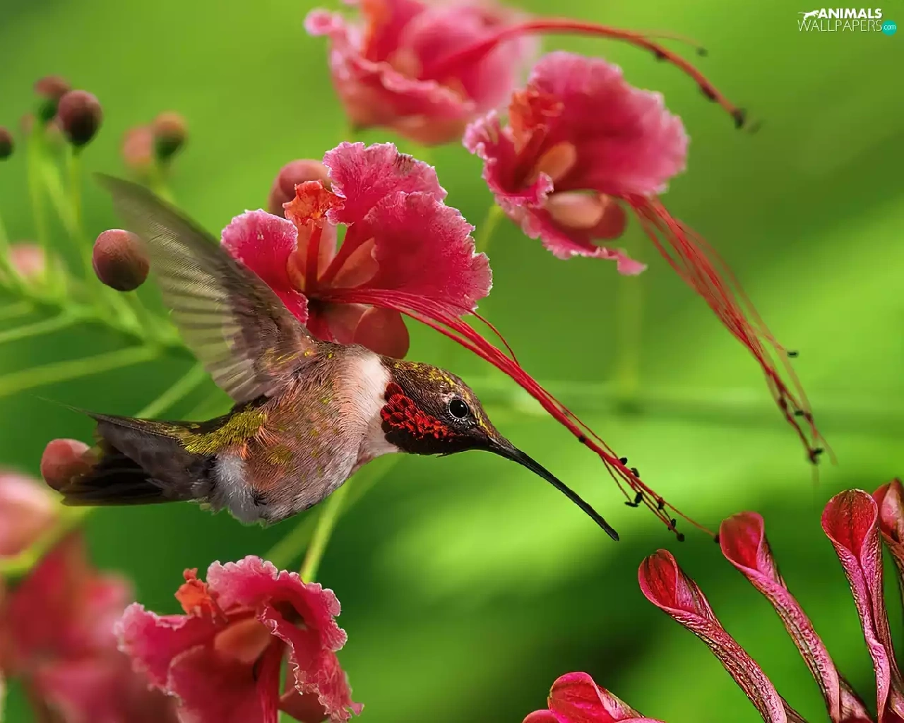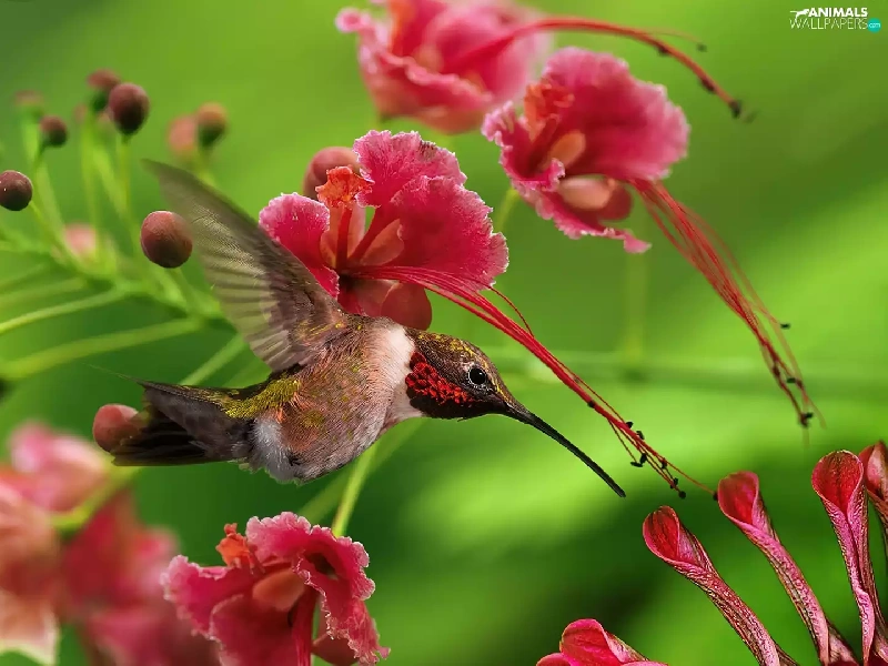 humming-bird, Flowers