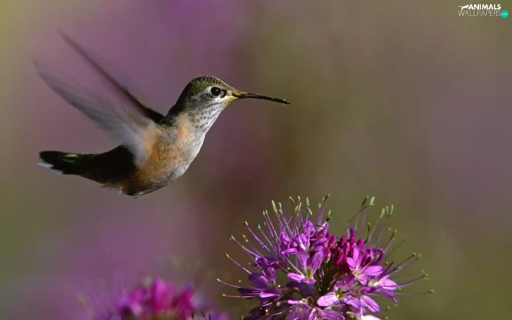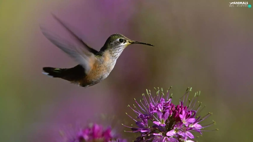Hummingbird, Colourfull Flowers