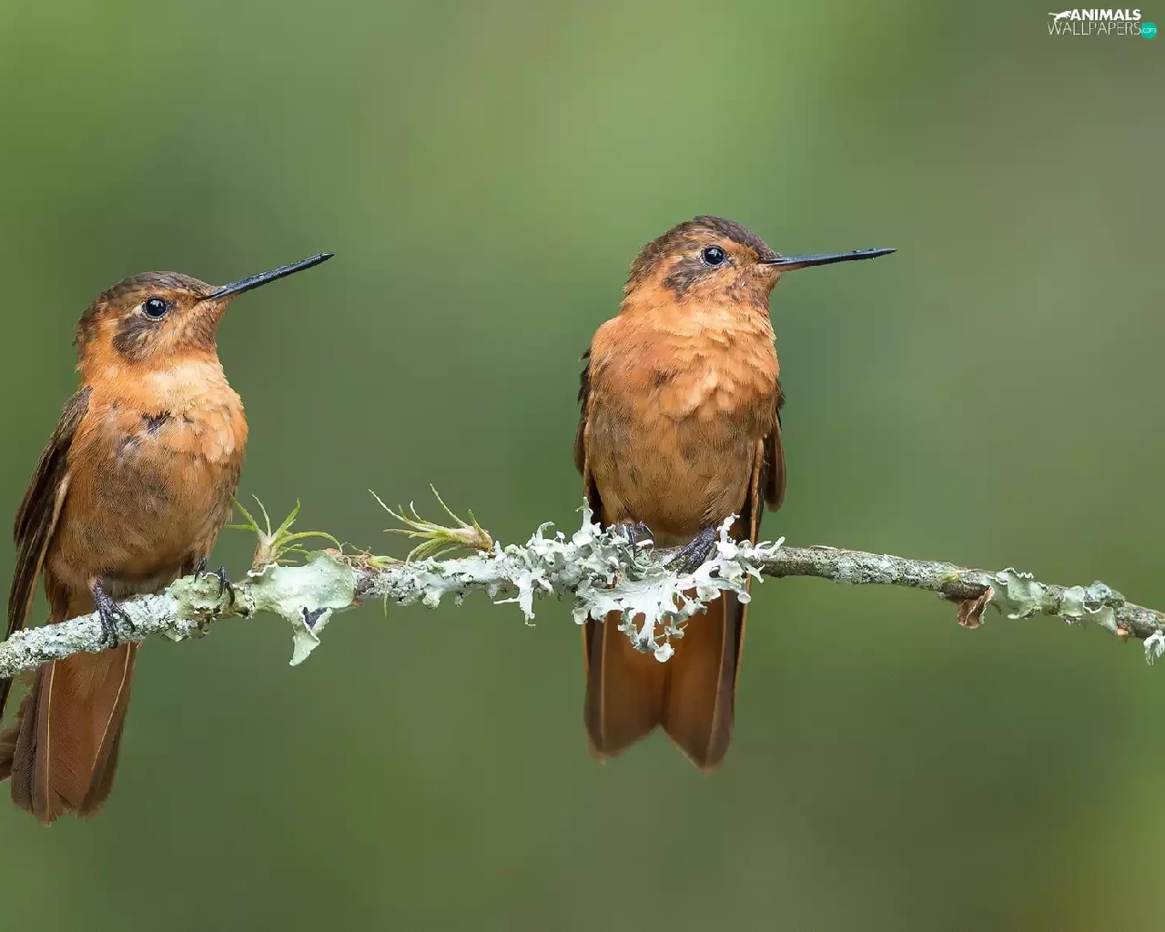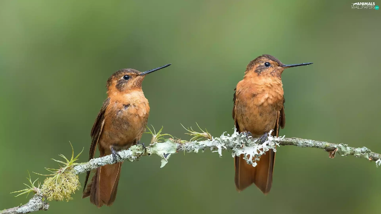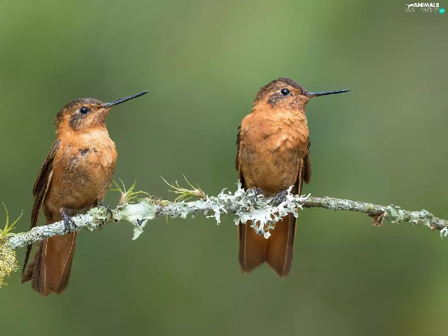 Hummingbirds, twig, birds, hummingbirds, Two cars