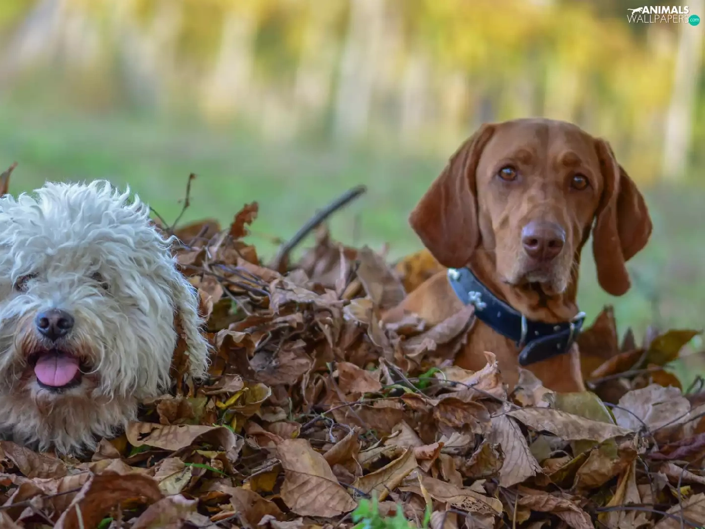 Two cars, Puli, Hungarian Shorthaired Pointer, Dogs