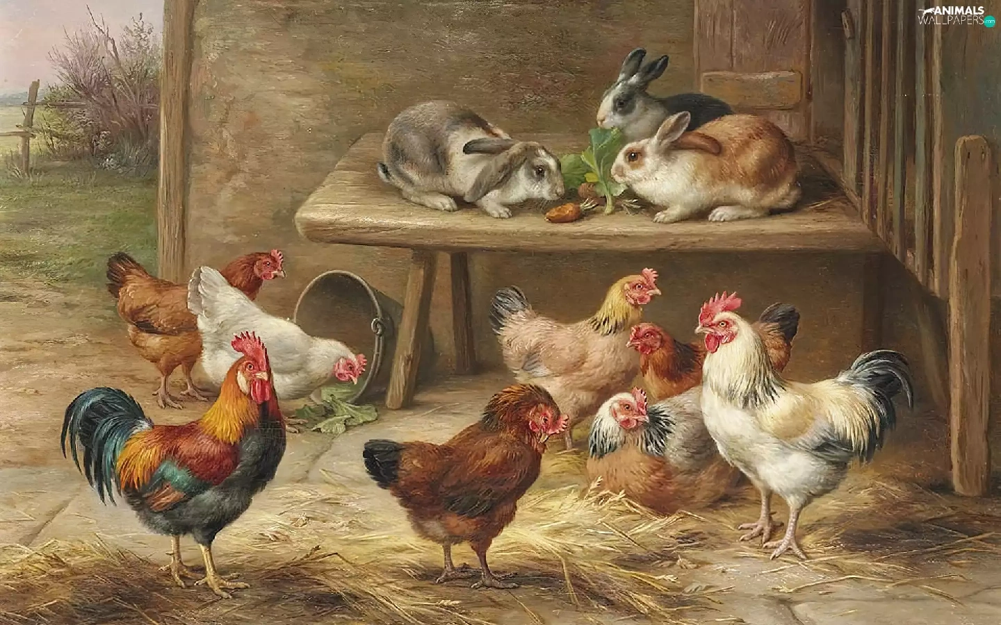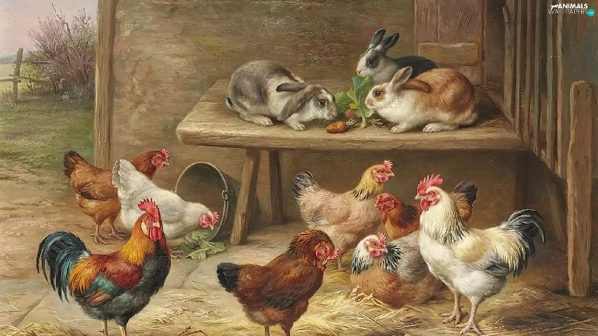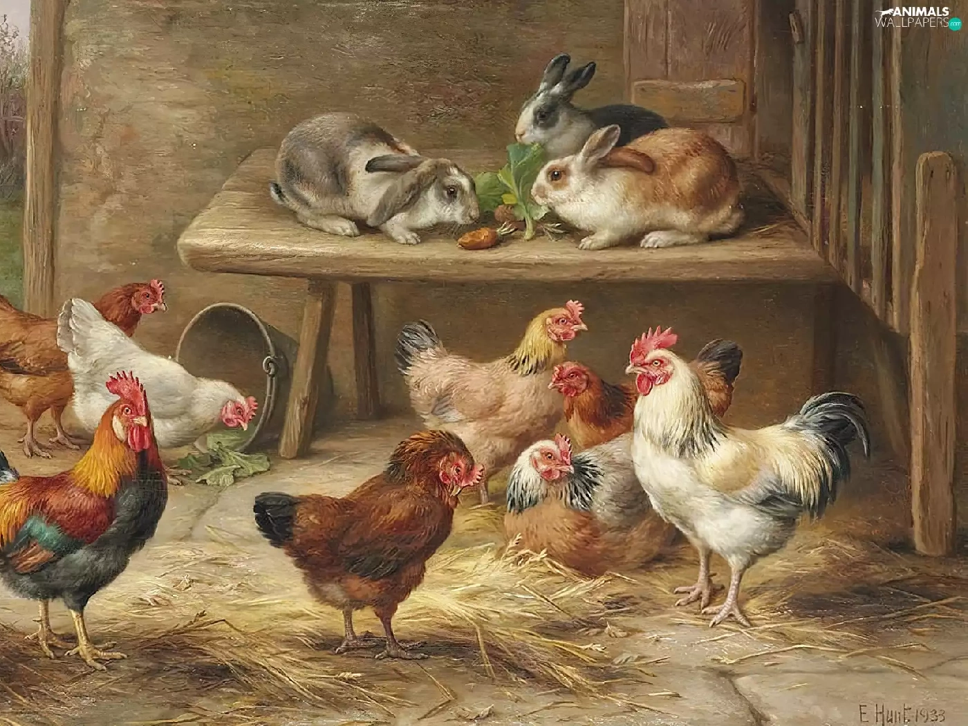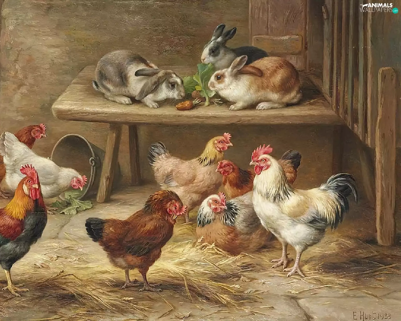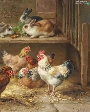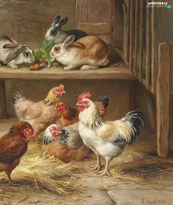 Edgar Hunt, Rabbits, table, hens