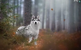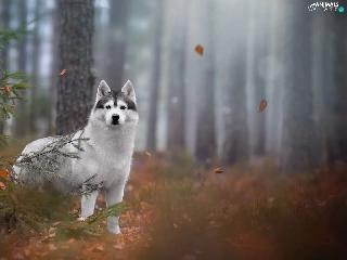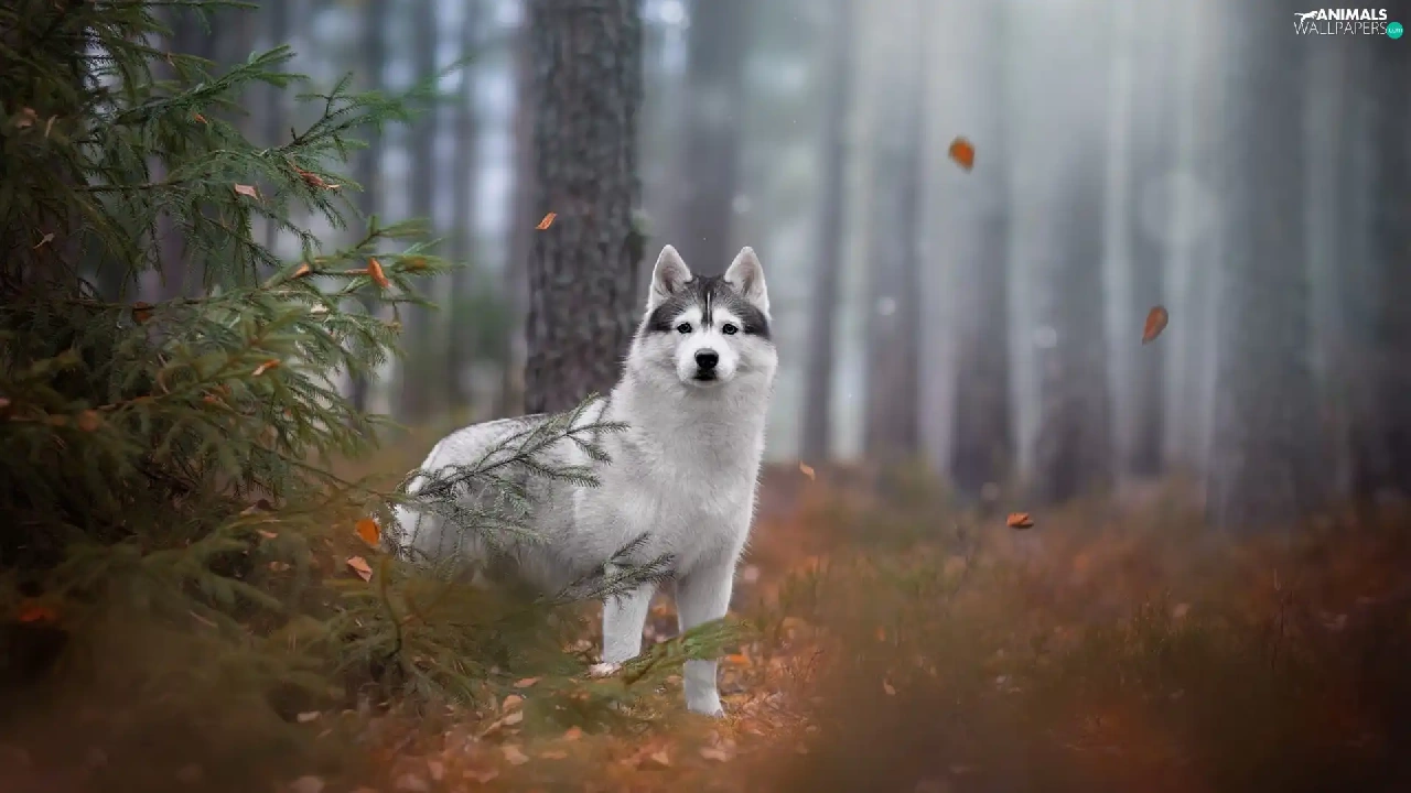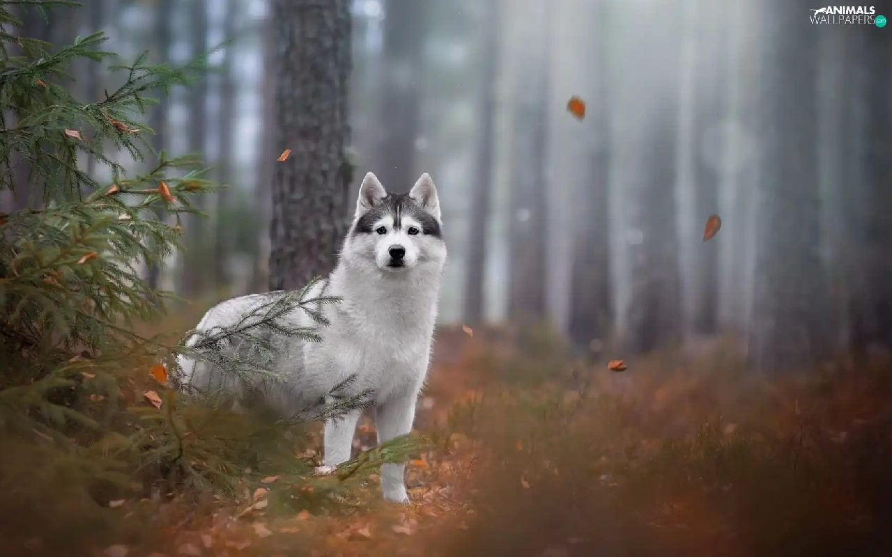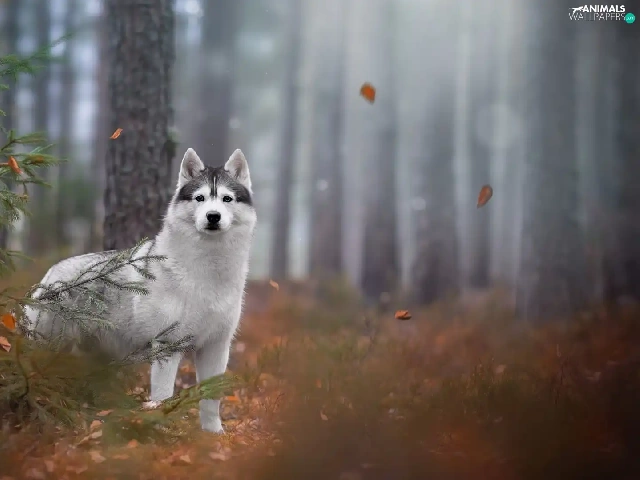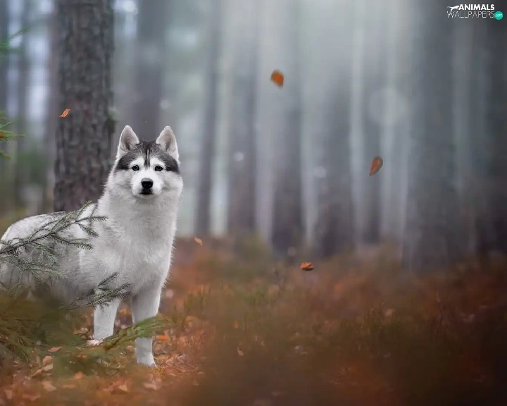 trees, viewes, Siberian Husky, forest, dog