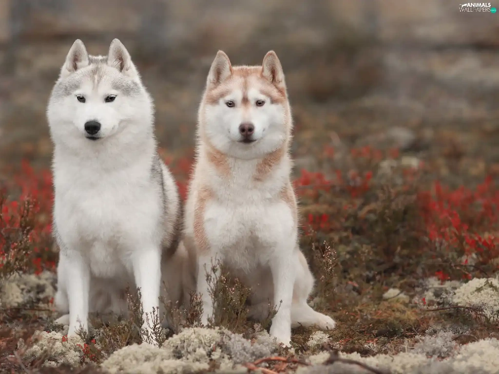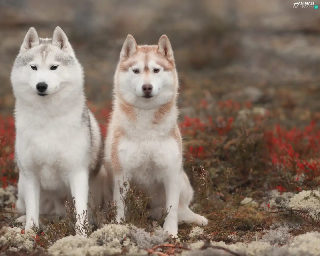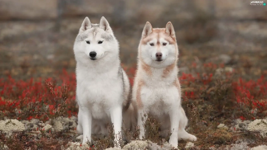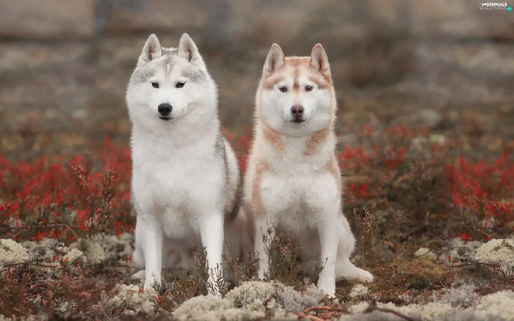 Two cars, Siberian Husky, Plants, Dogs